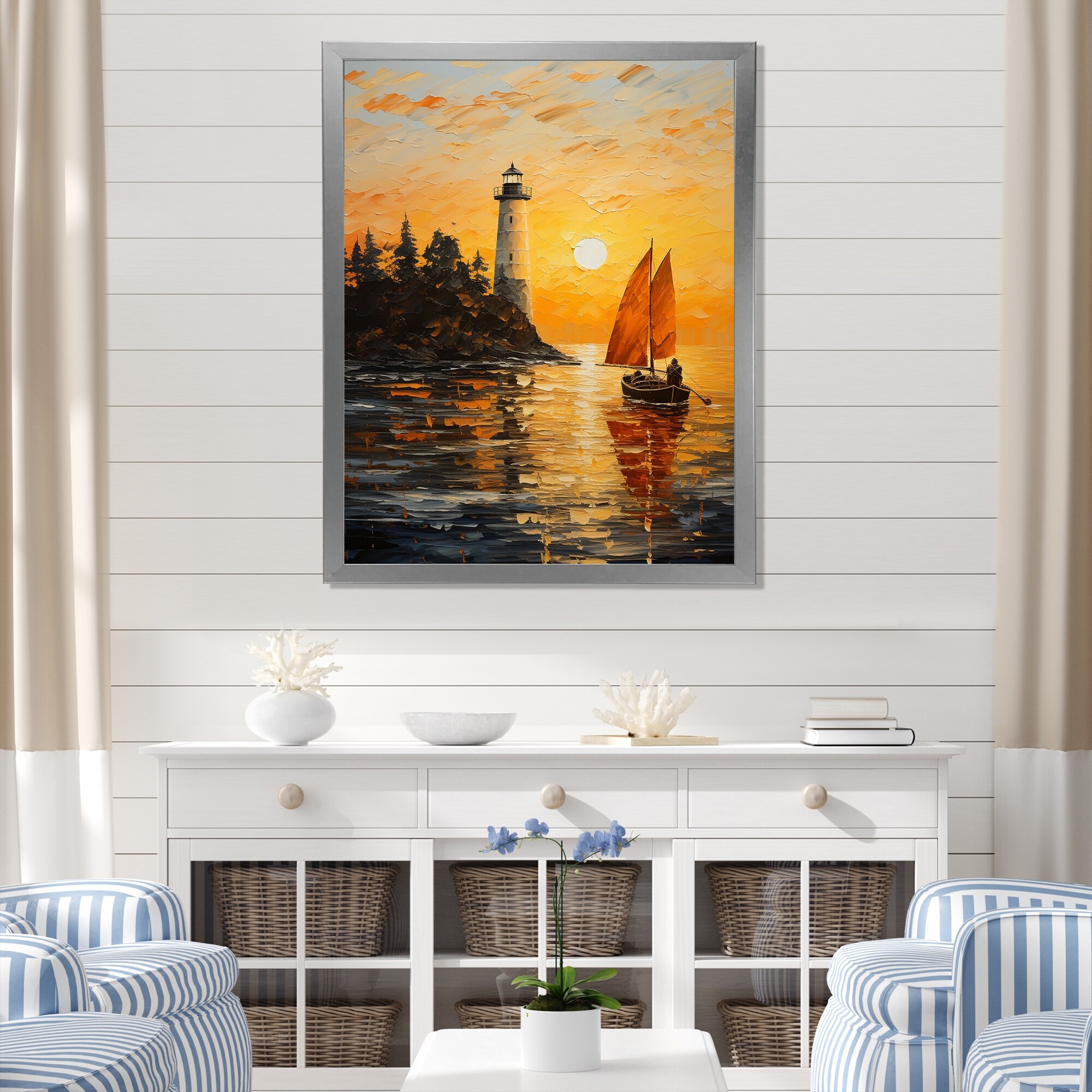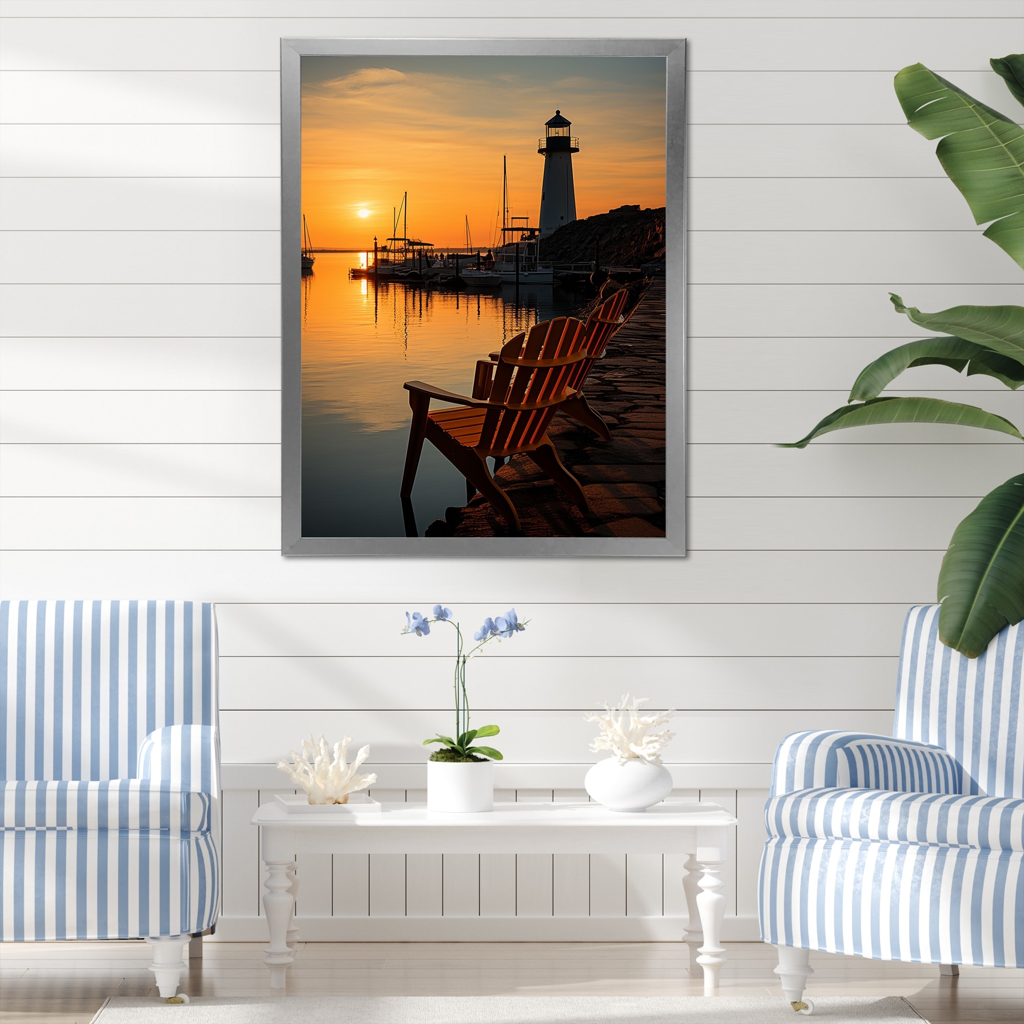 Designart "Port Maritime Solace III" Port Landscape Framed Wall Art Prints