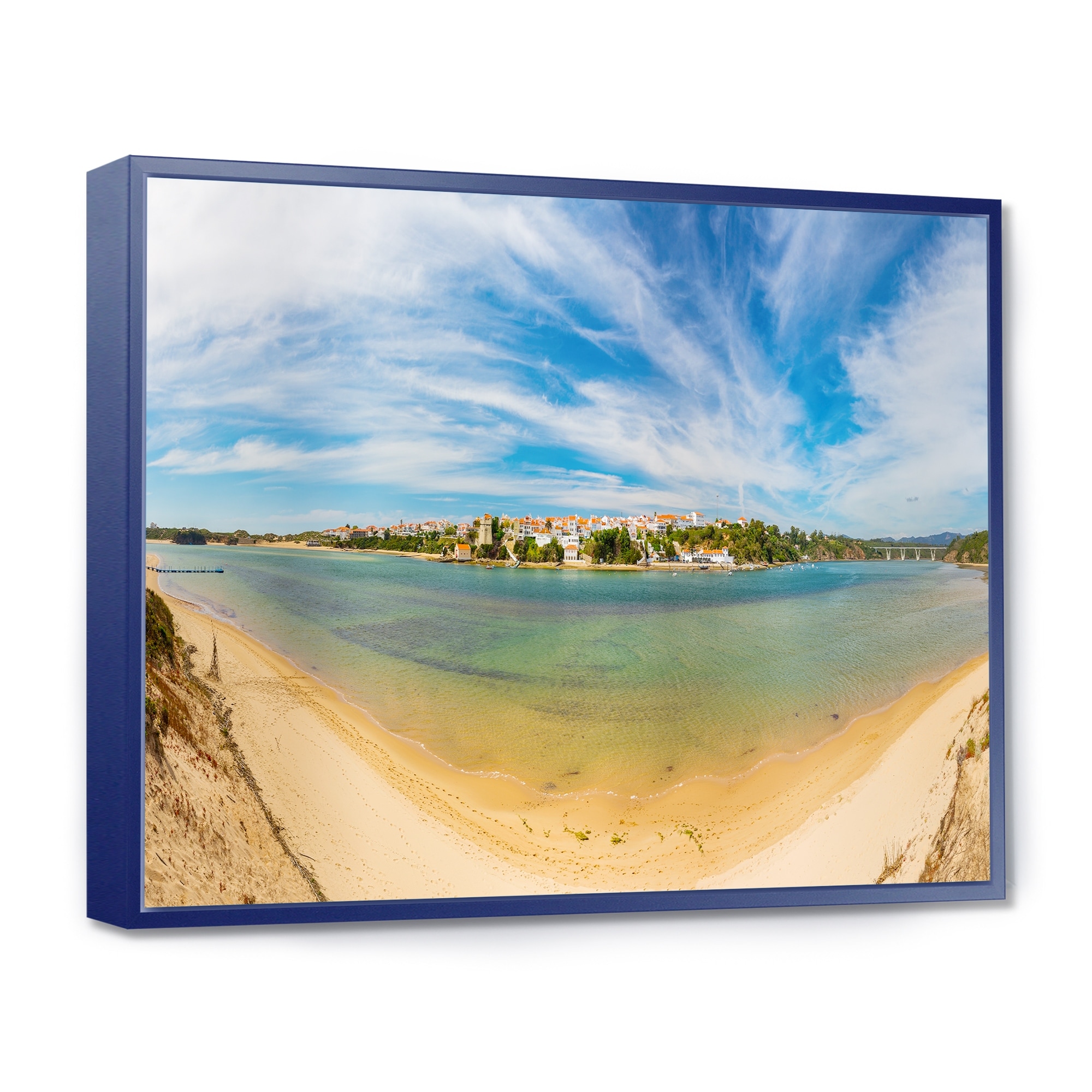 Designart "Portuguese Maritime Village Panorama" Extra Large Seashore Framed Canvas Art
