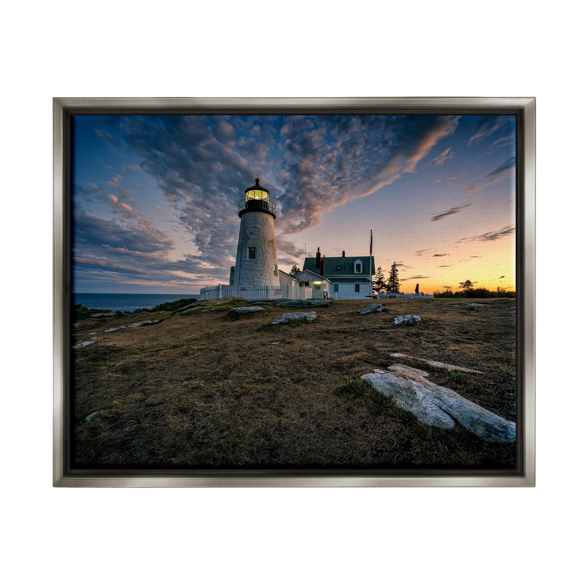 Stupell Industries Maritime Lighthouse Clouds Landscape Framed Floater Canvas Wall Art by Rick Berk