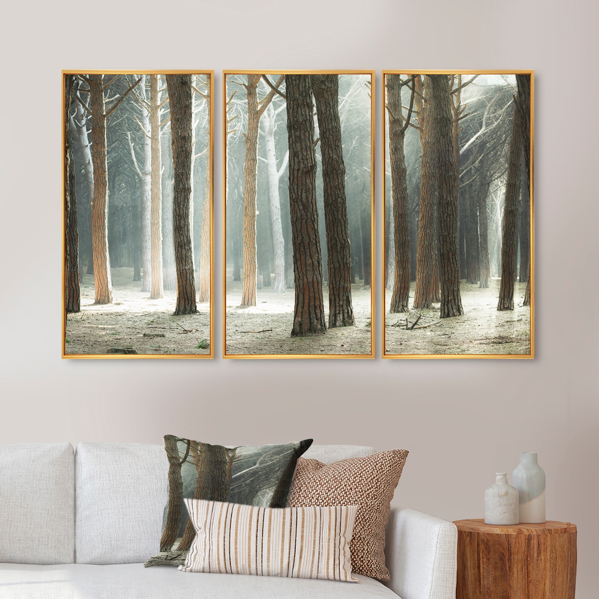 Designart "Maritime Pine Tree Forest with Rays" Forest Framed Art Set of 3 - 4 Colors of Frames