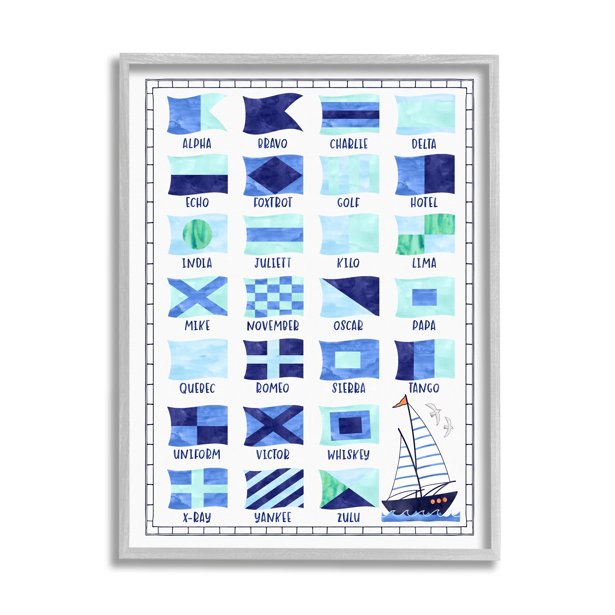 Stupell Blue Nautical Flag Sailing Maritime Symbols Chart Framed Wall Art - White