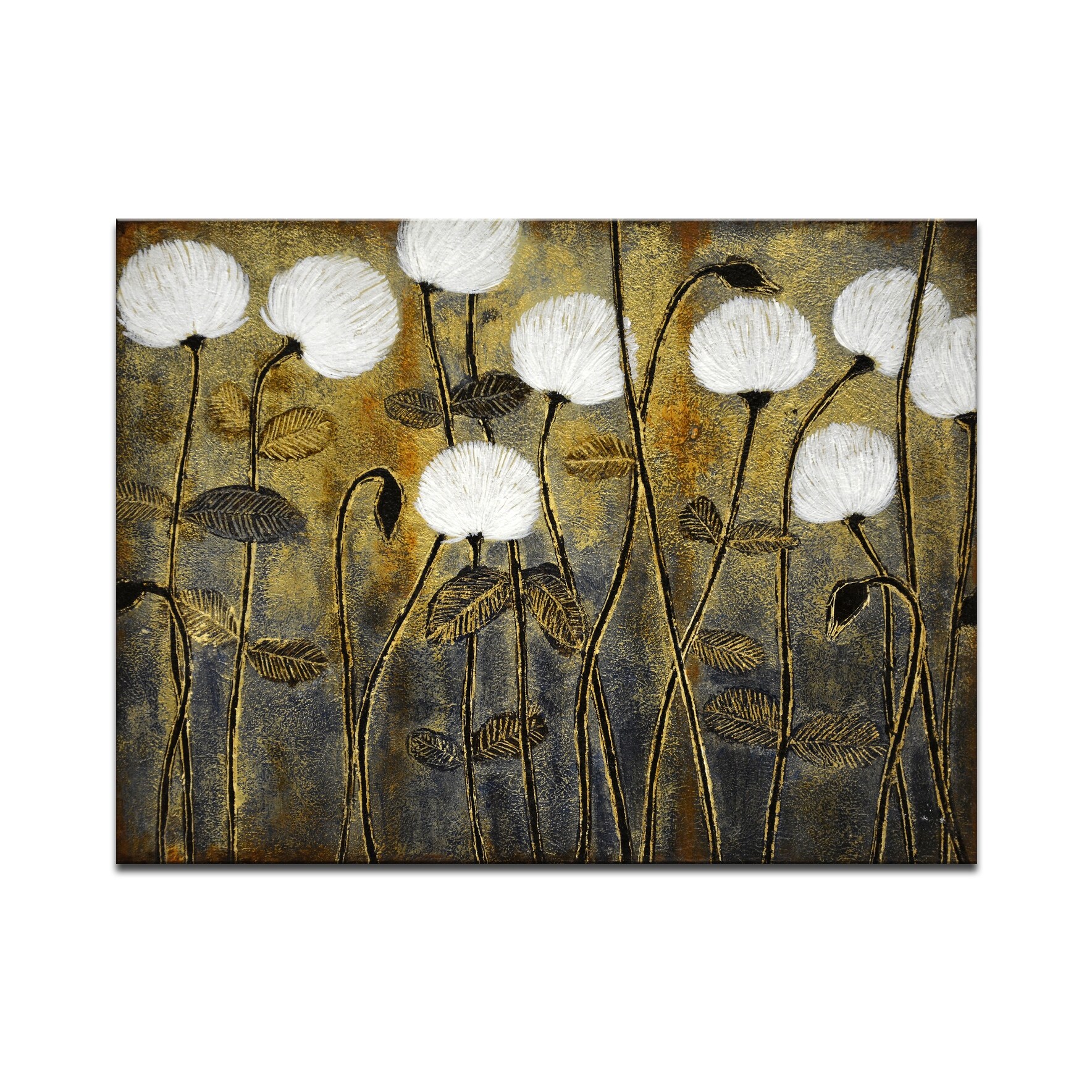 Million Flowers, Glam Circles Modern Gold Canvas Wall Art Print for Living Room