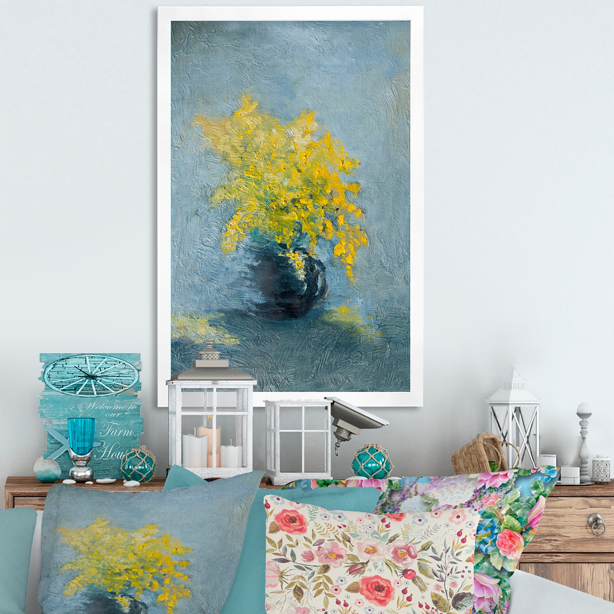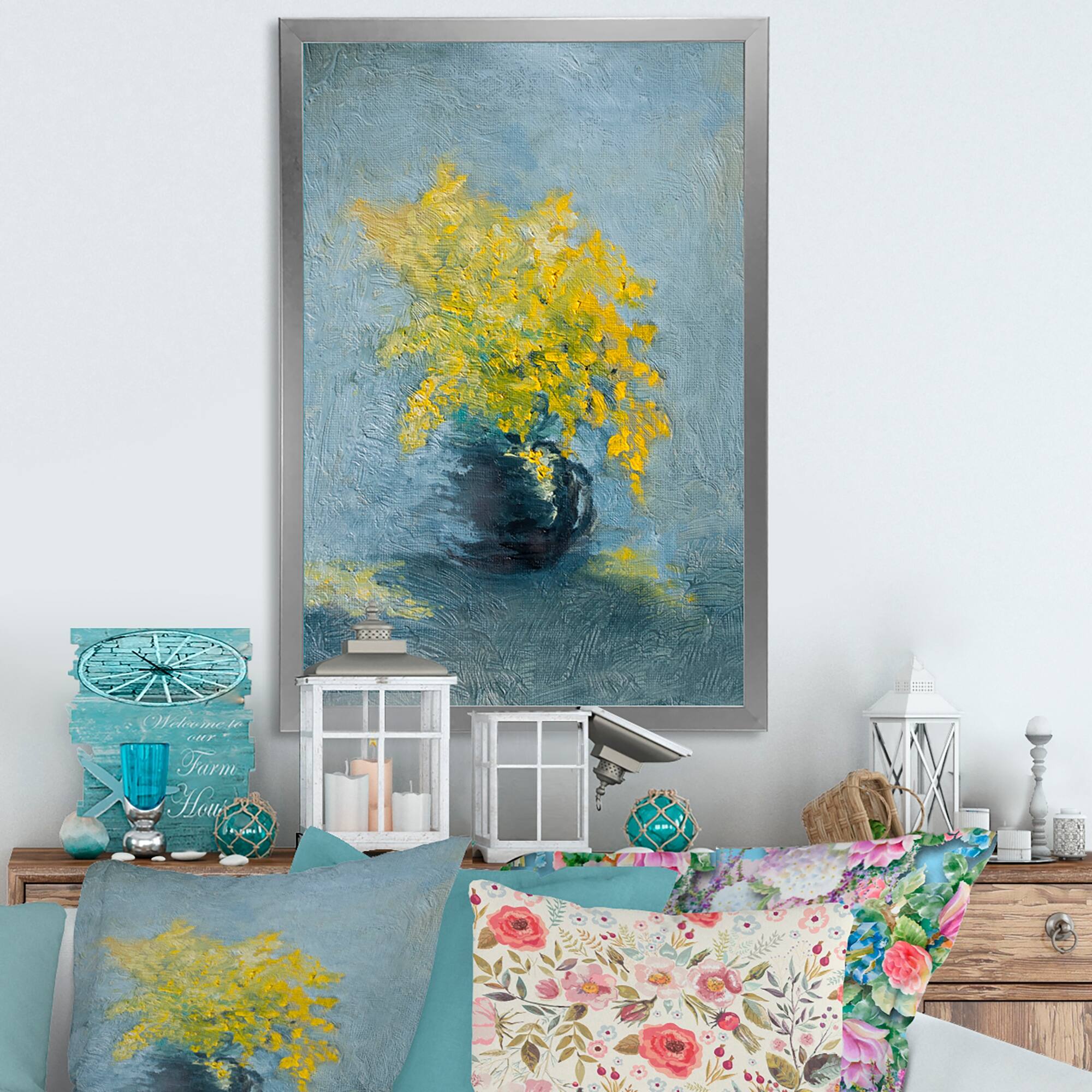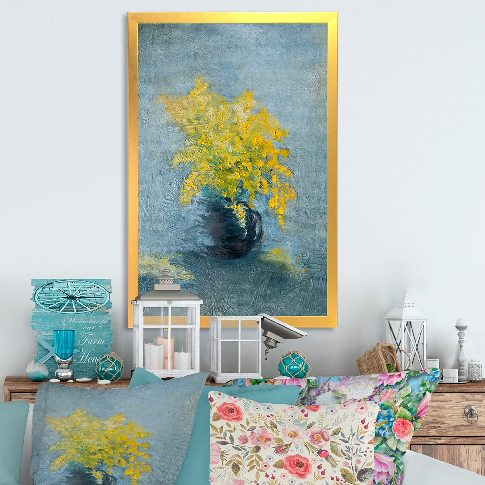 Designart "Still Life Yellow And Blue Mimosa" Traditional Framed Wall Decor