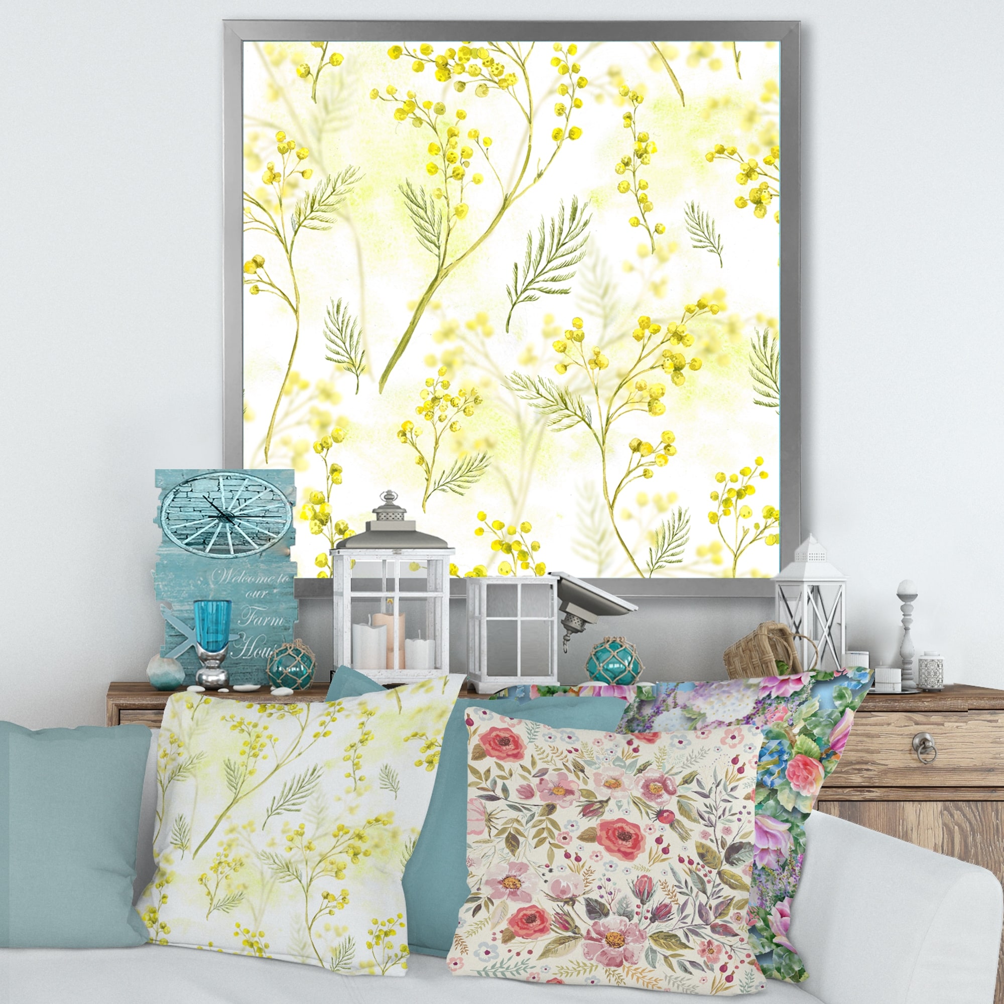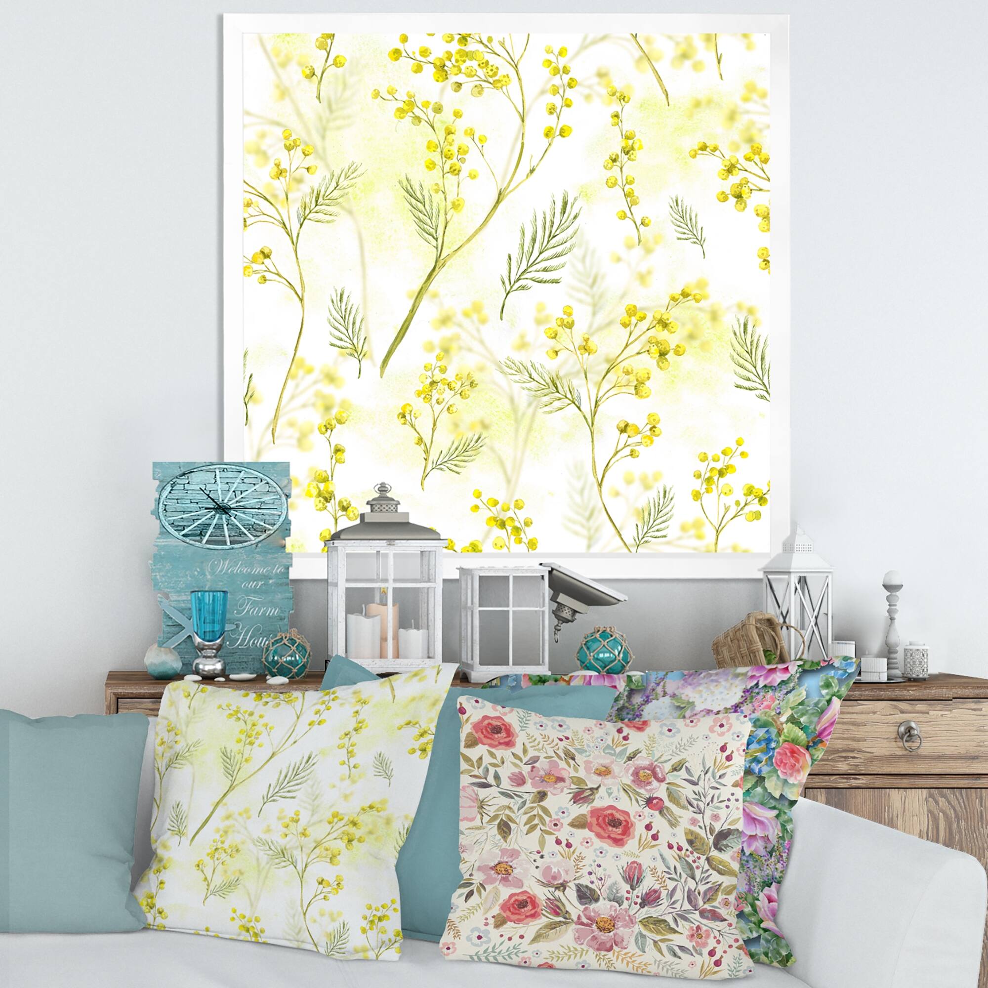 Designart "Yellow Sprigs of Mimosa Flowers" Patterned Framed Art Print