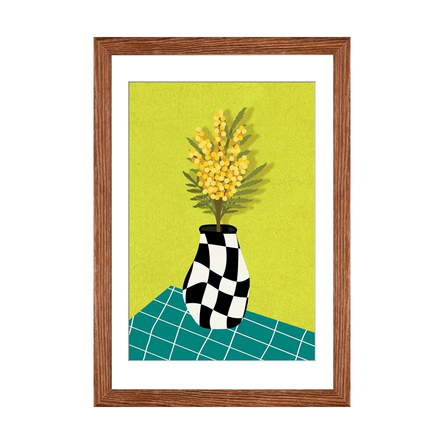 Designart "Still Life Mimosa Vase" Traditional Framed Wall Art