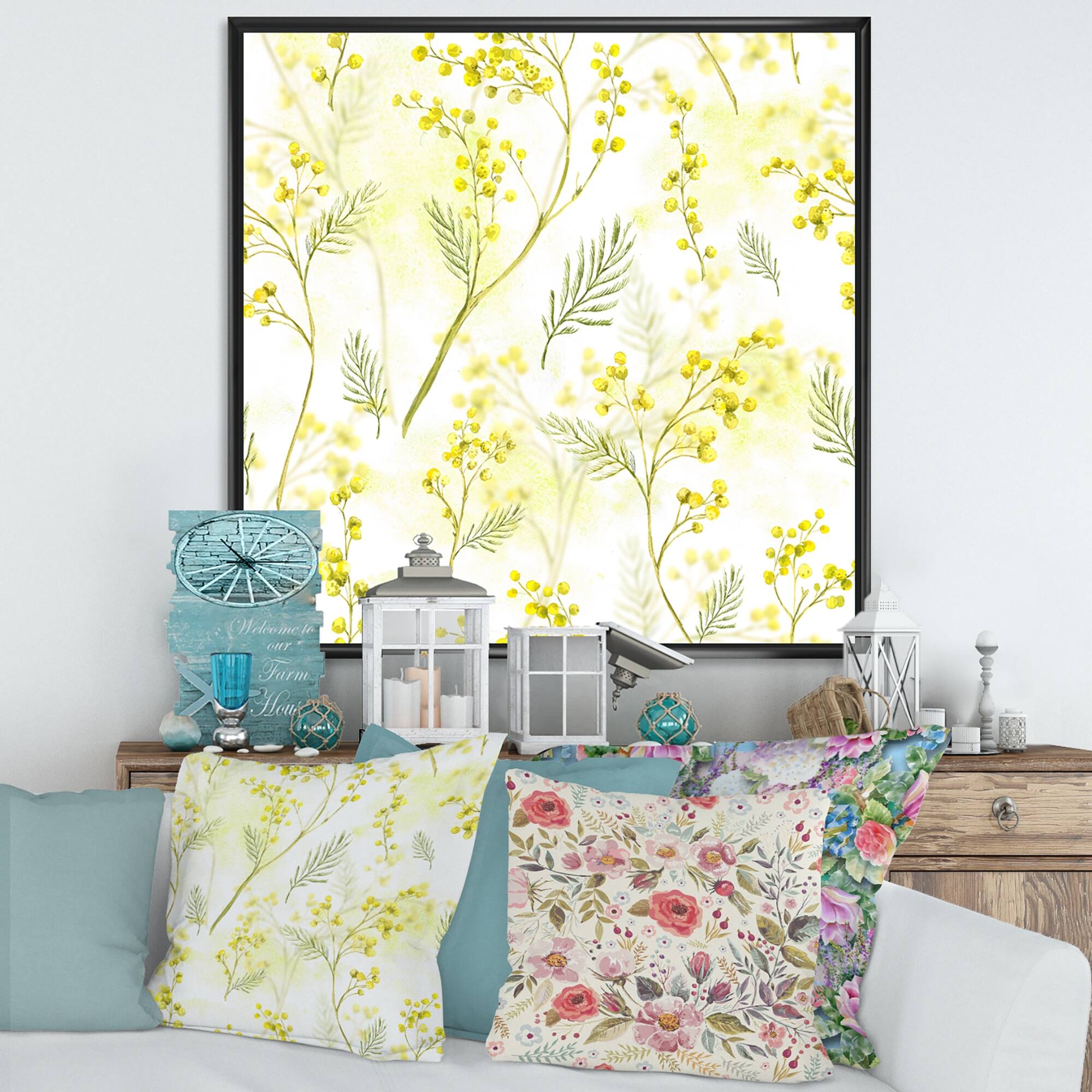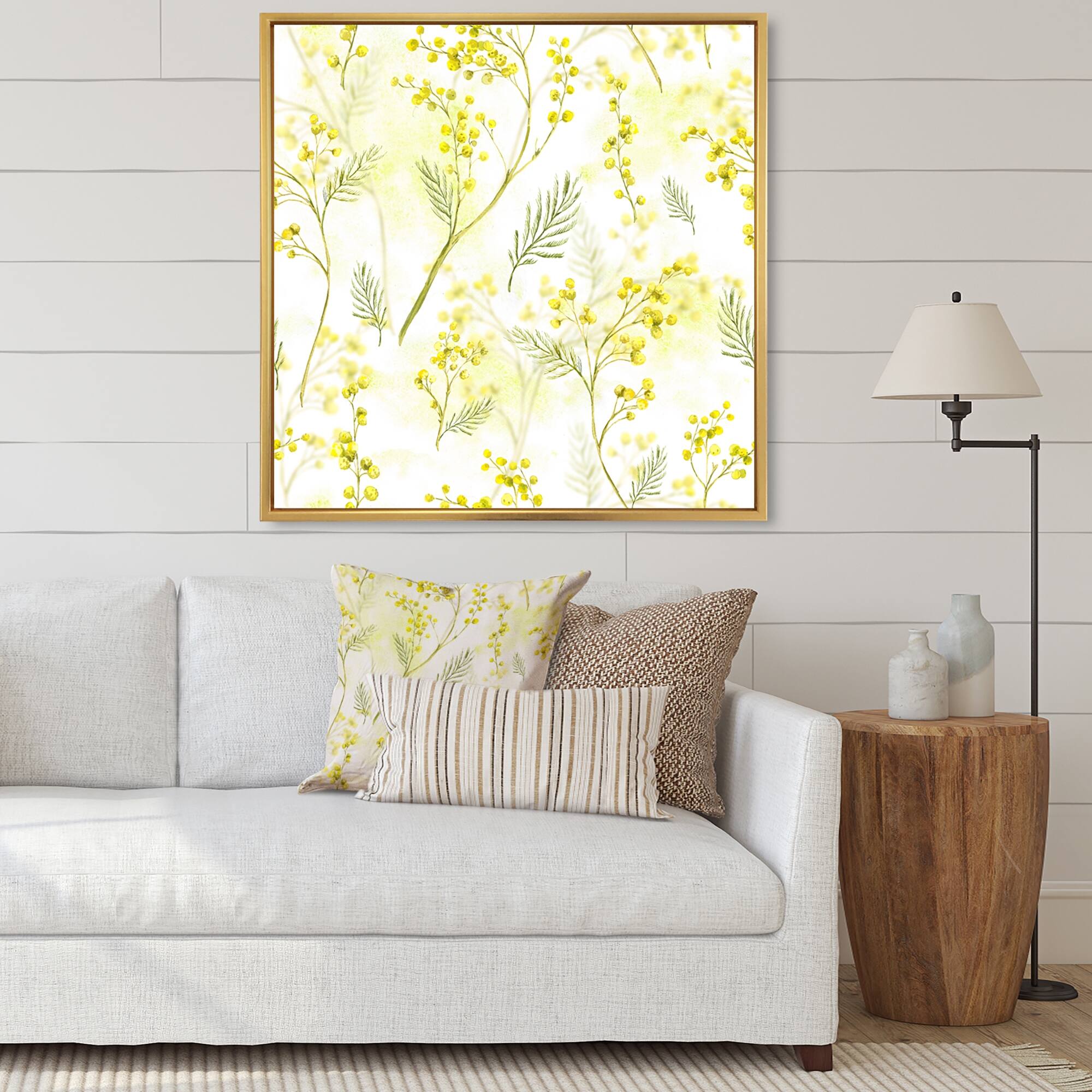 Designart "Yellow Sprigs of Mimosa Flowers" Patterned Framed Canvas Wall Art Print