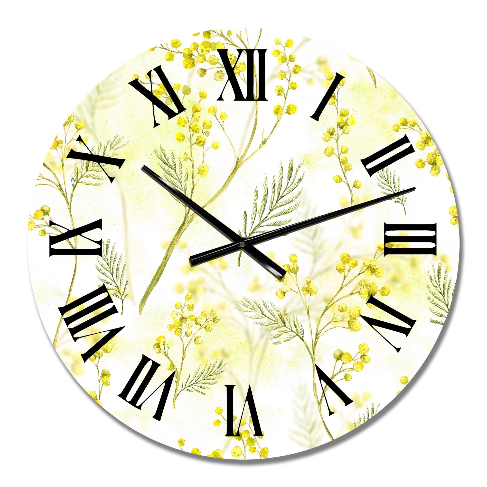 Designart 'Yellow Sprigs of Mimosa Flowers' Patterned wall clock