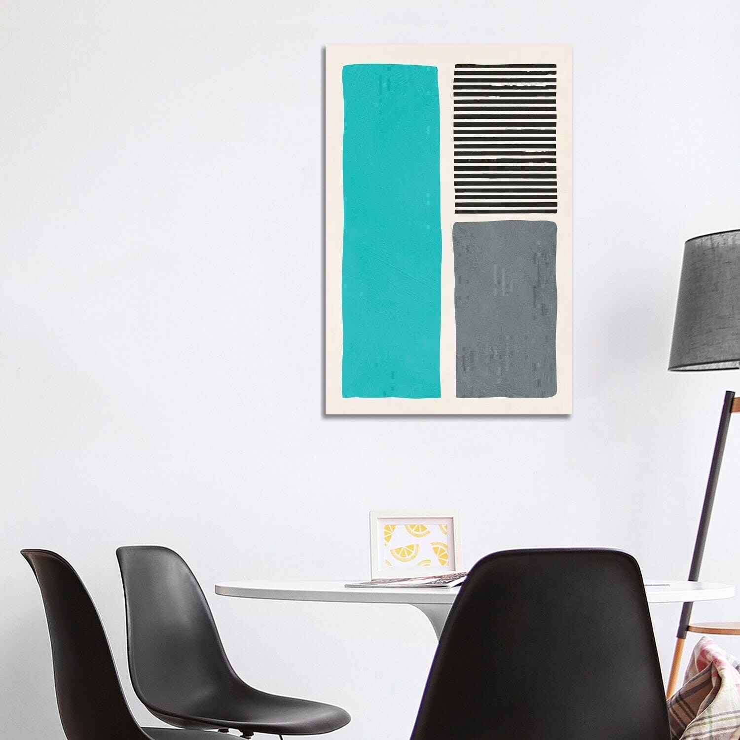 iCanvas "Turquoise Gray Min Abstract Black Lines" by EmcDesignLab Canvas Print