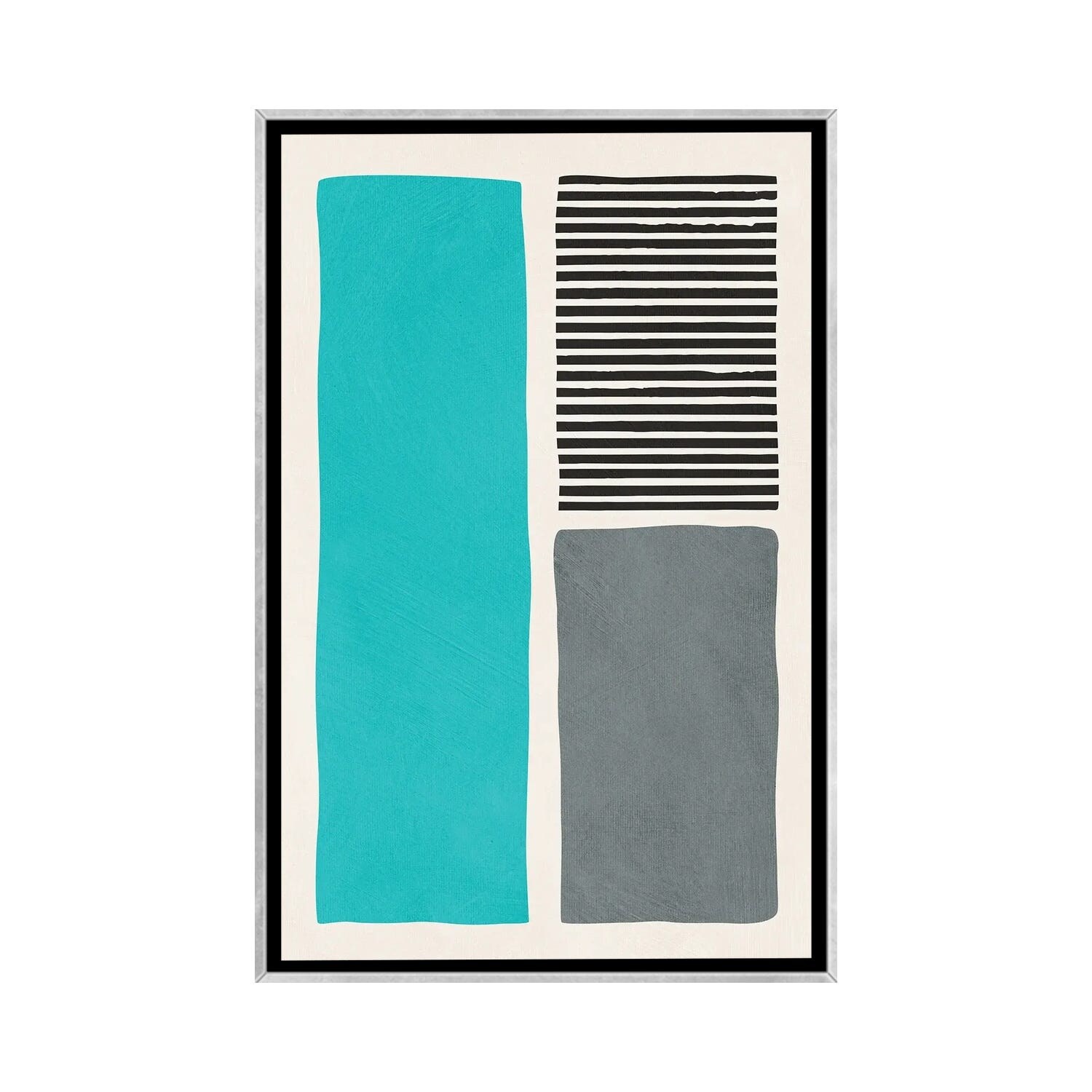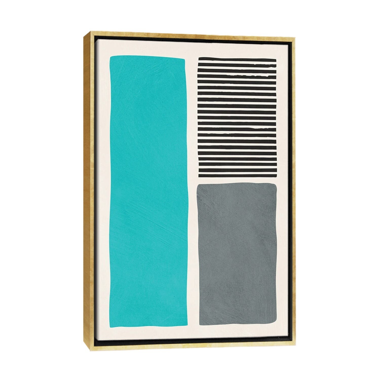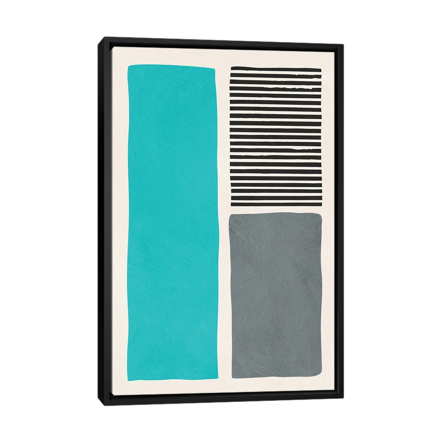 iCanvas "Turquoise Gray Min Abstract Black Lines" by EmcDesignLab Framed