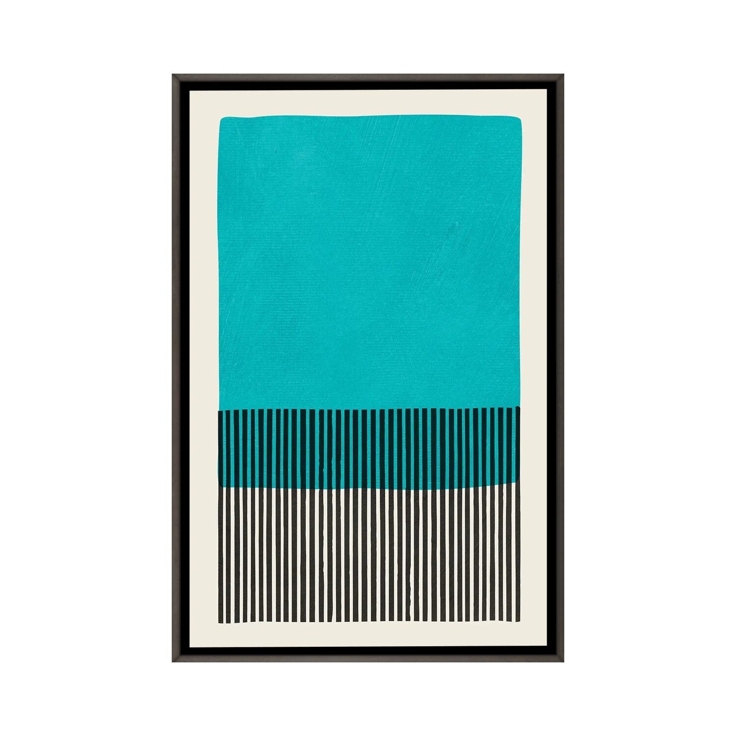 iCanvas "Turquoise Gray Min Abstract Black Lines" by EmcDesignLab Framed Canvas Print