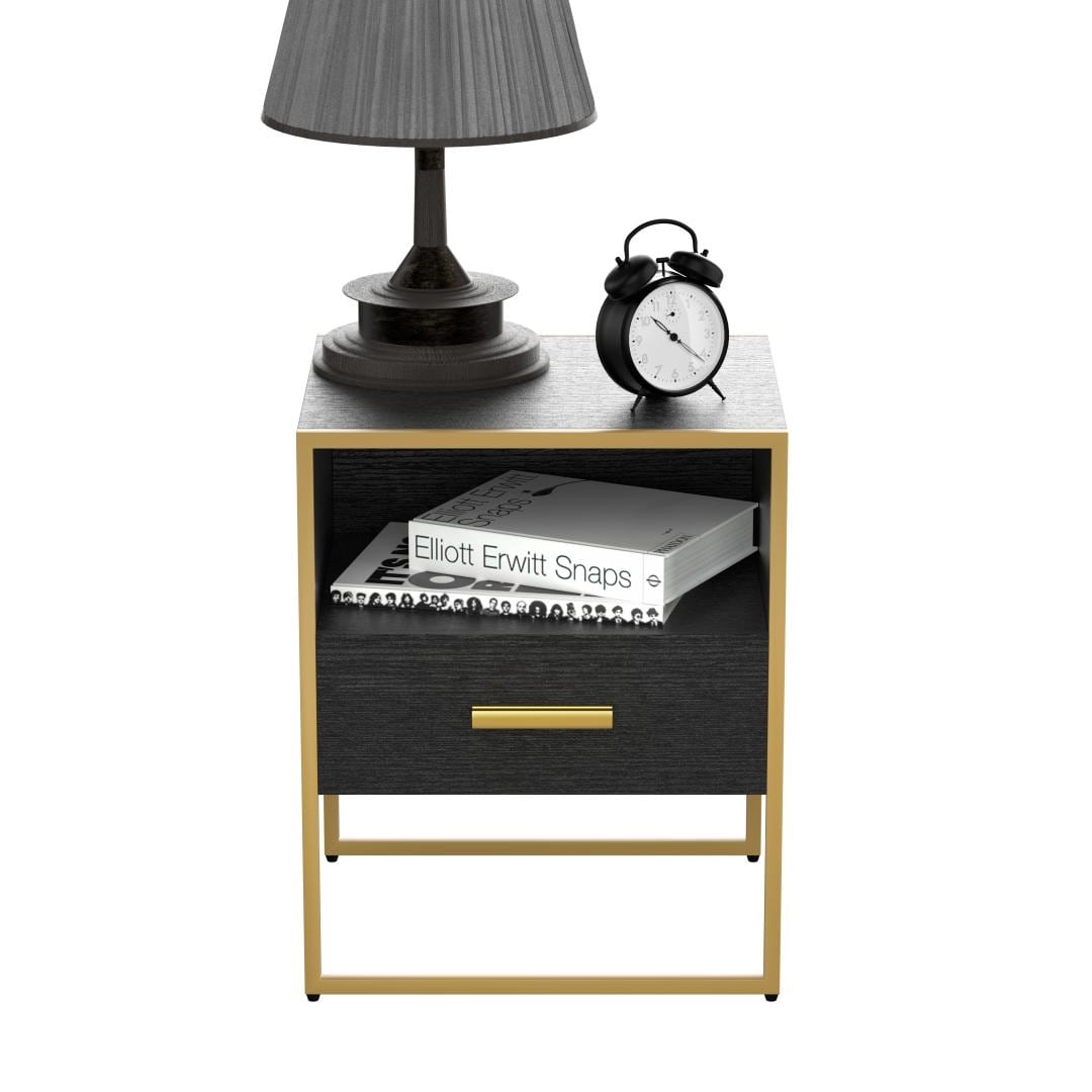 Update Modern Nightstand with 1 Drawers for Bedroom/Living Room/Side Table (Gold and Black)