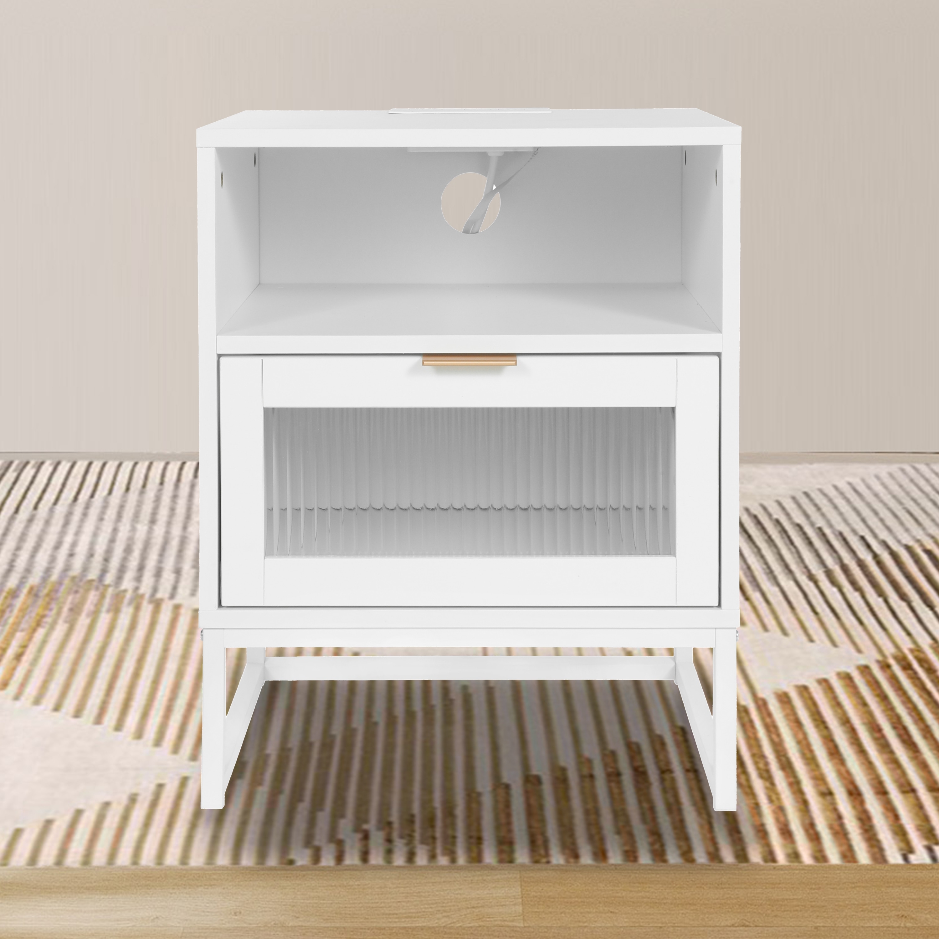 Mid Century Modern 1-Drawer Bedroom Nightstand in White