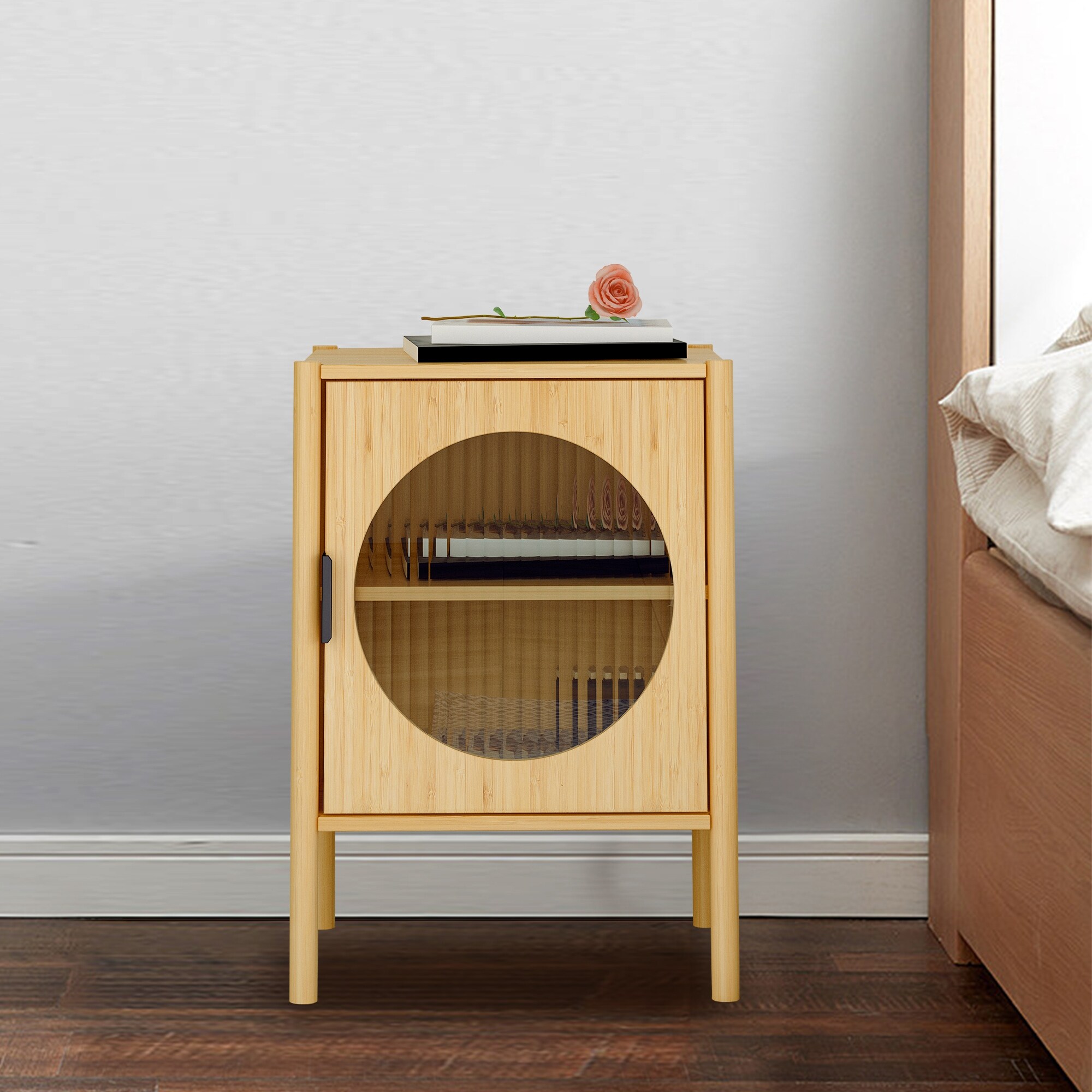 JASIWAY Bamboo Modern Nightstand with Shelves, Natural