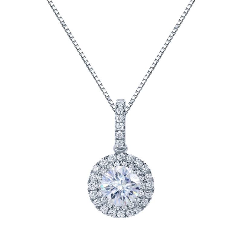 Auriya 14k Gold 2ct Double Halo Moissanite and Diamond Necklace 5/8ct TDW