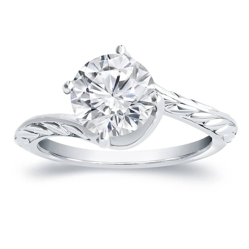 Vintage Inspired Round 4ctw Moissanite Solitaire Engagement Ring by Auriya 14k Gold