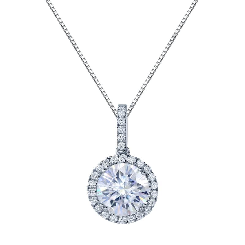 Auriya Platinum 2ctw Round Solitaire Moissanite Necklace 6-prong Basket - 8.2 mm