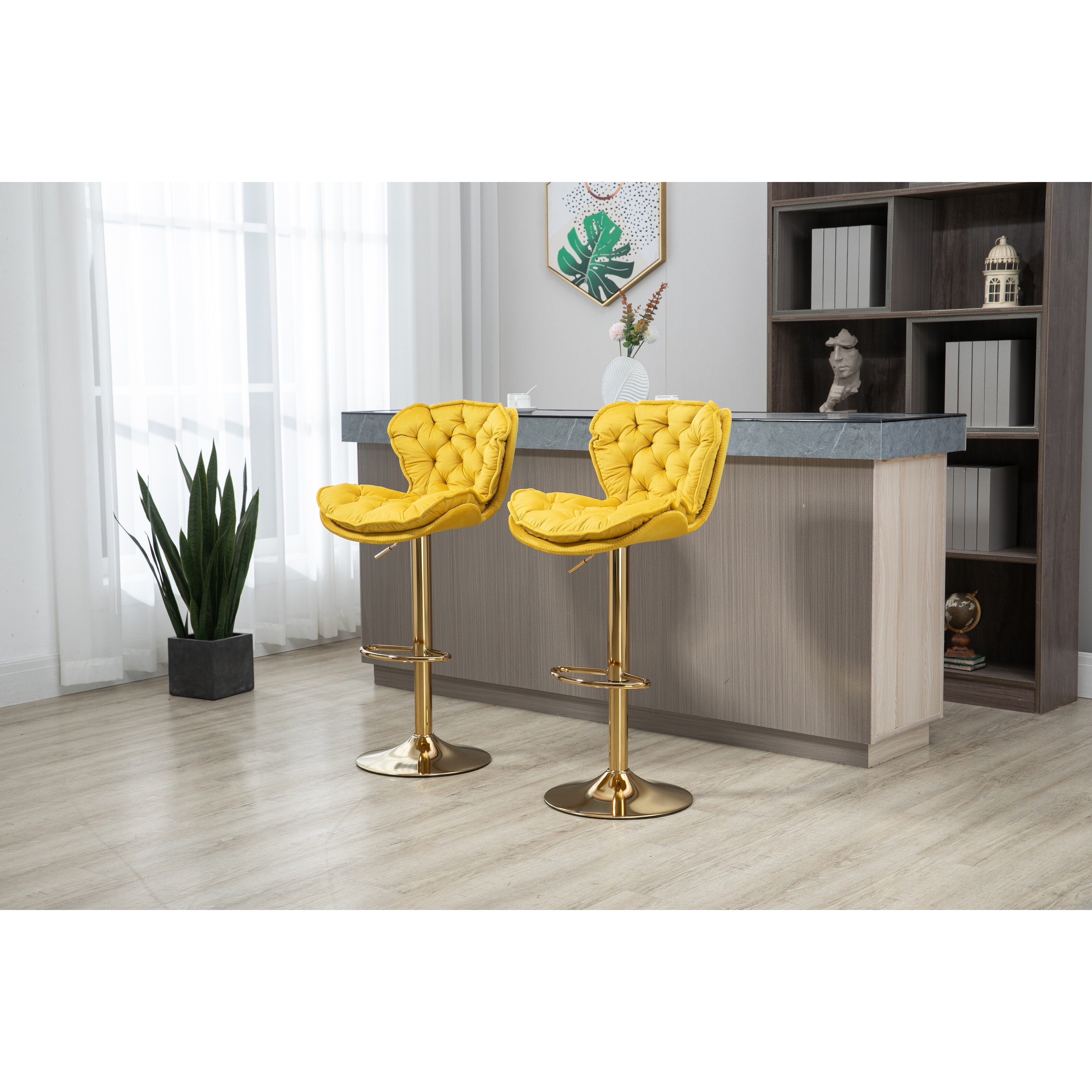 Set of 2 Swivel Adjustable Counter Height Bar Stools, Mustard