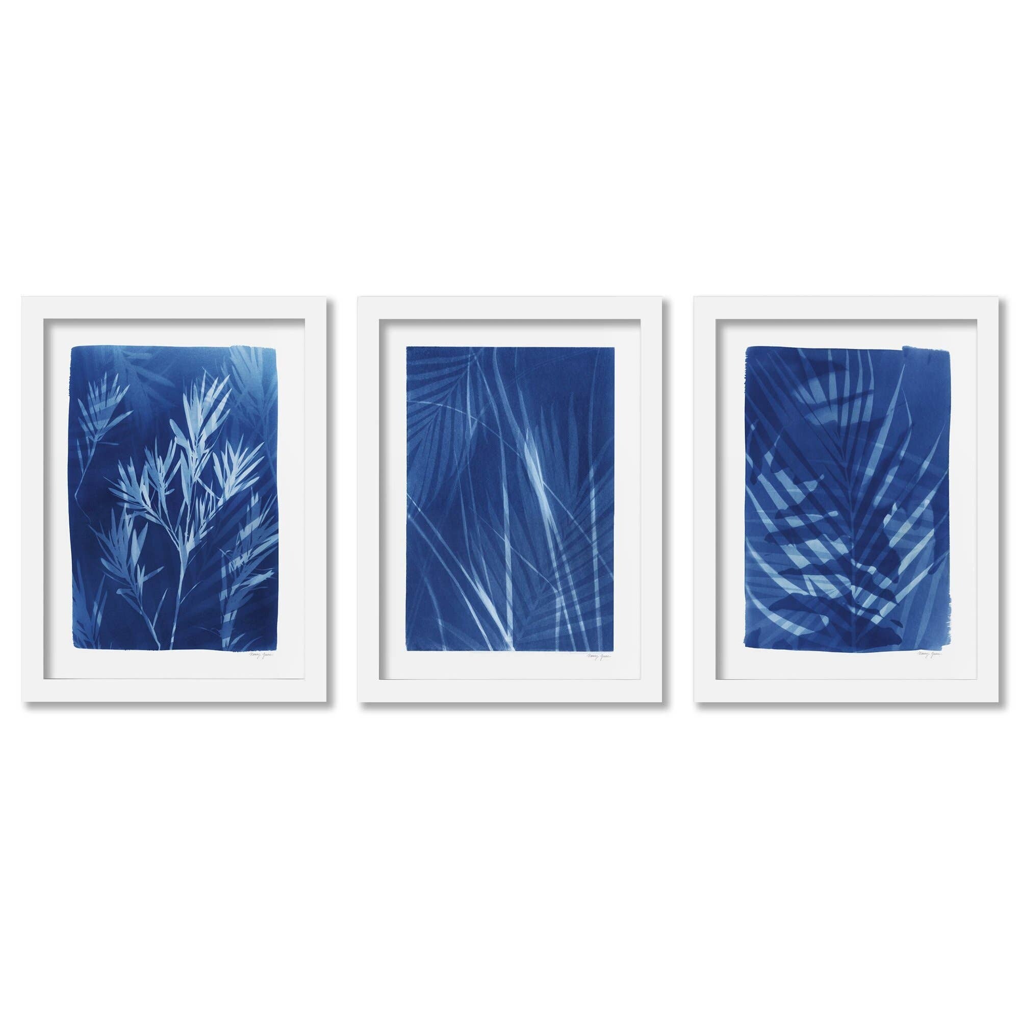 Cyanotype Tropical Nancy Green Botanical 2 - 3 Piece Framed Gallery Art Set