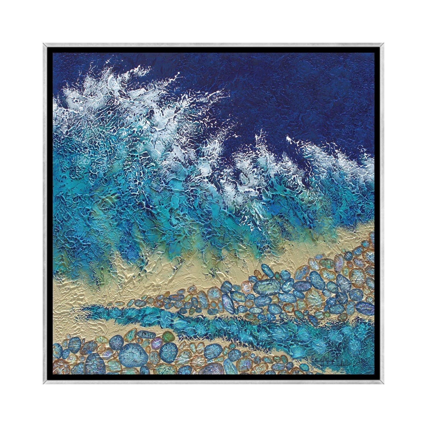 iCanvas "Splashy Rocks" by Nancy Eckels Framed|White - 18x18