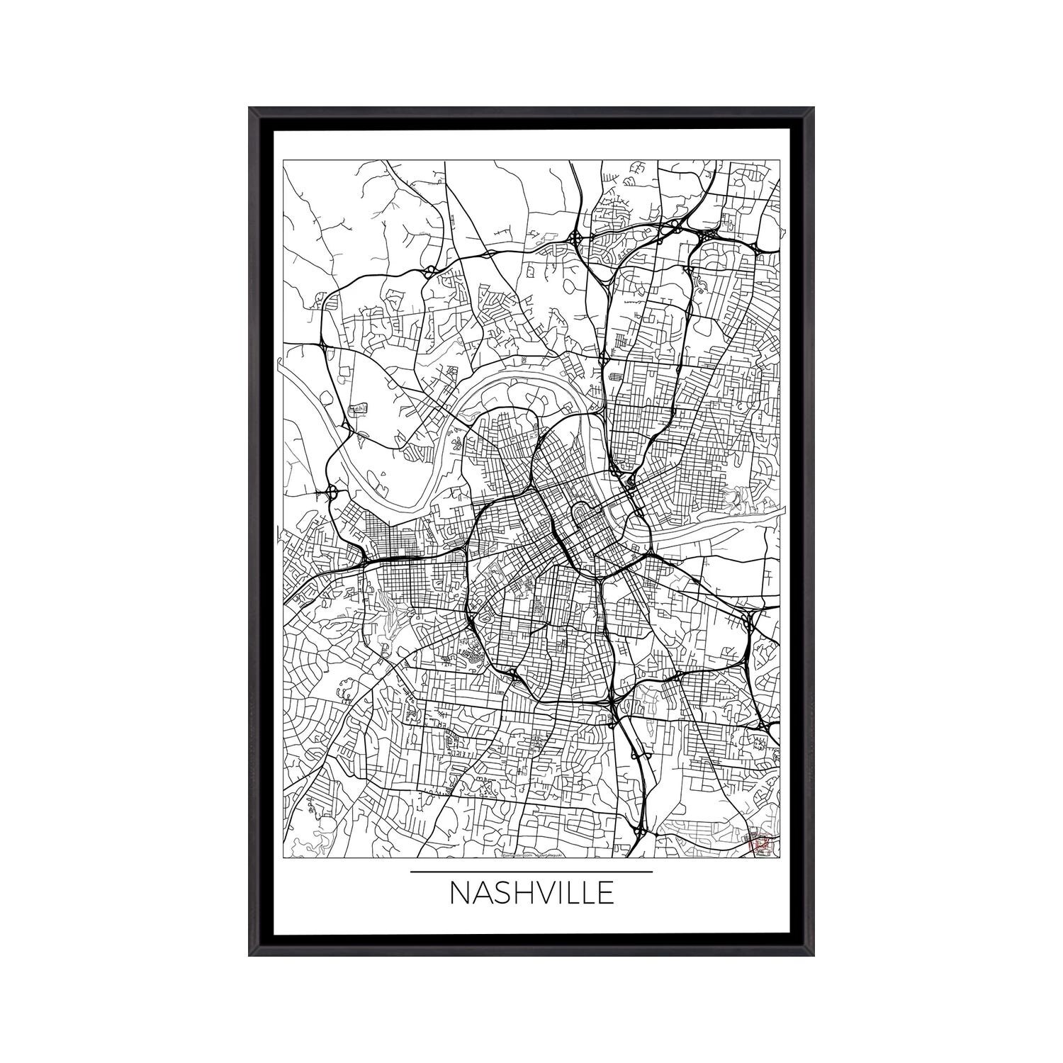 iCanvas "Nashville Minimal Urban Blueprint Map" by Hubert Roguski Framed