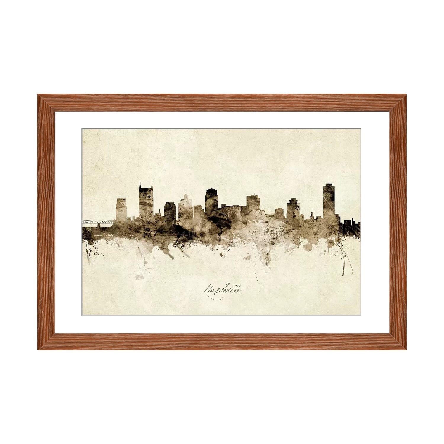 iCanvas "Nashville Tennessee Skyline Taupe" by Michael Tompsett Framed