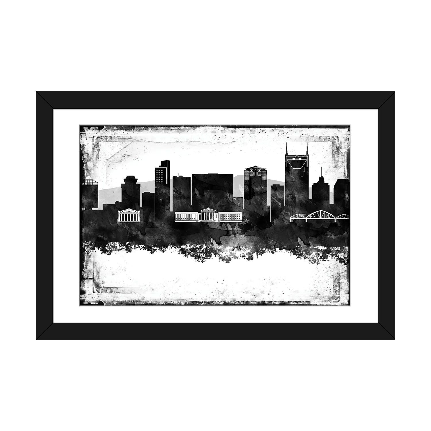 iCanvas "Nashville Black And White Framed Skylines" by WallDecorAddict