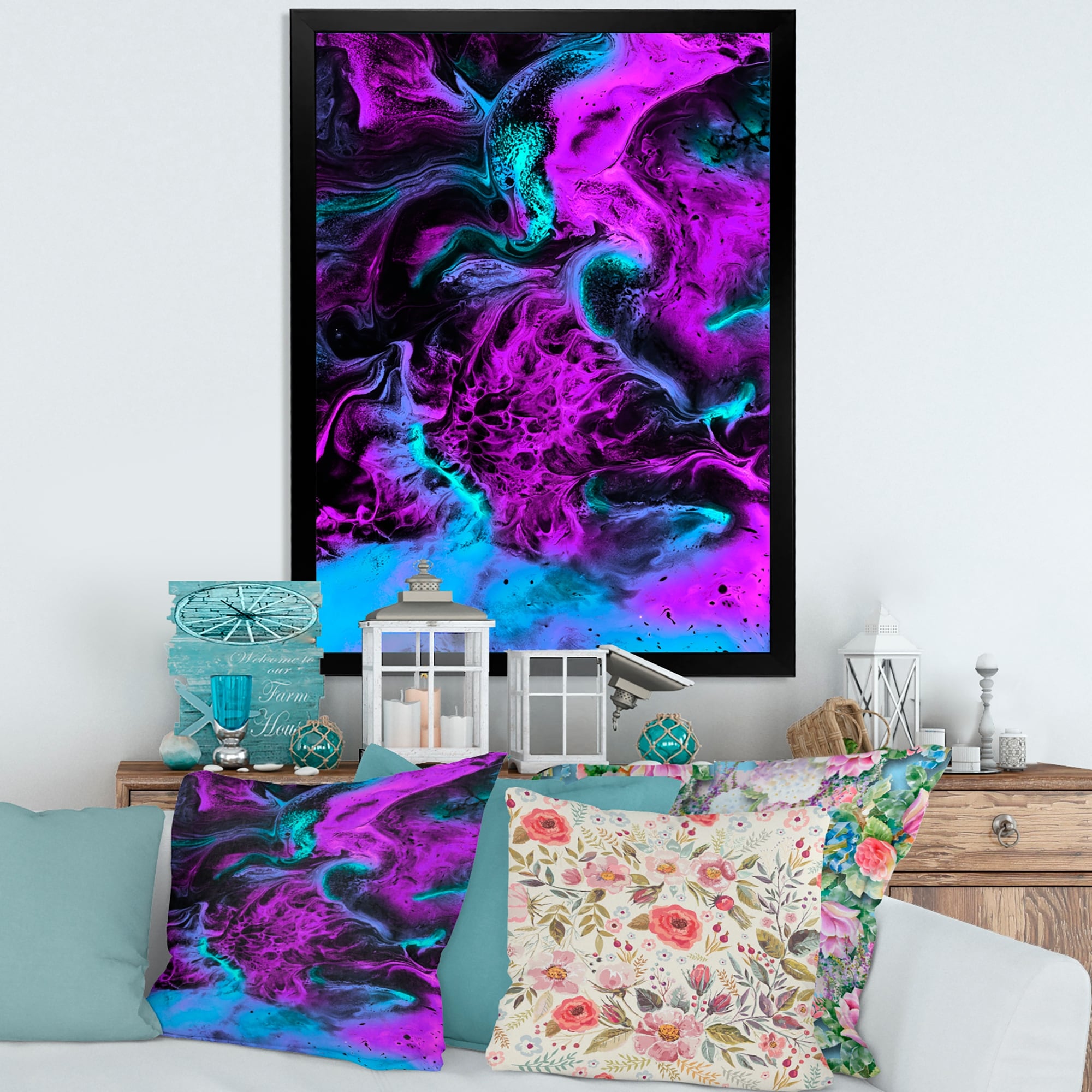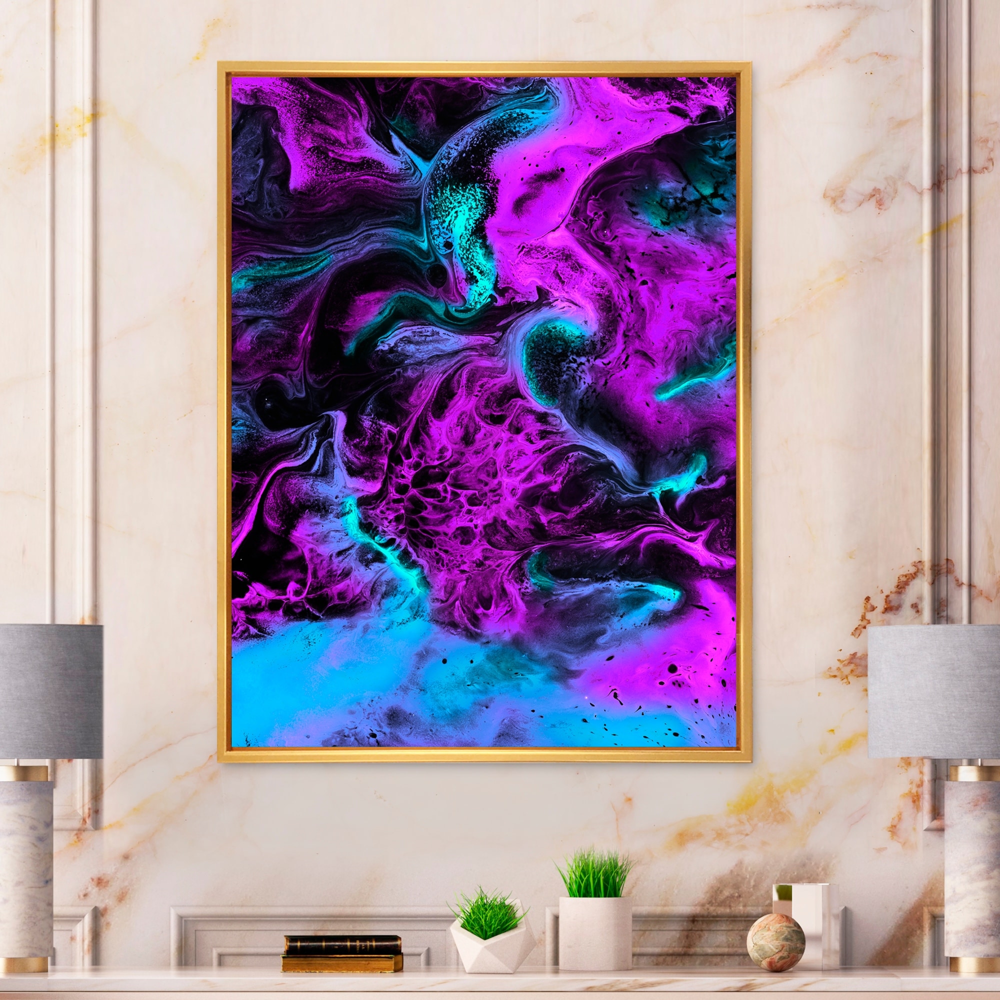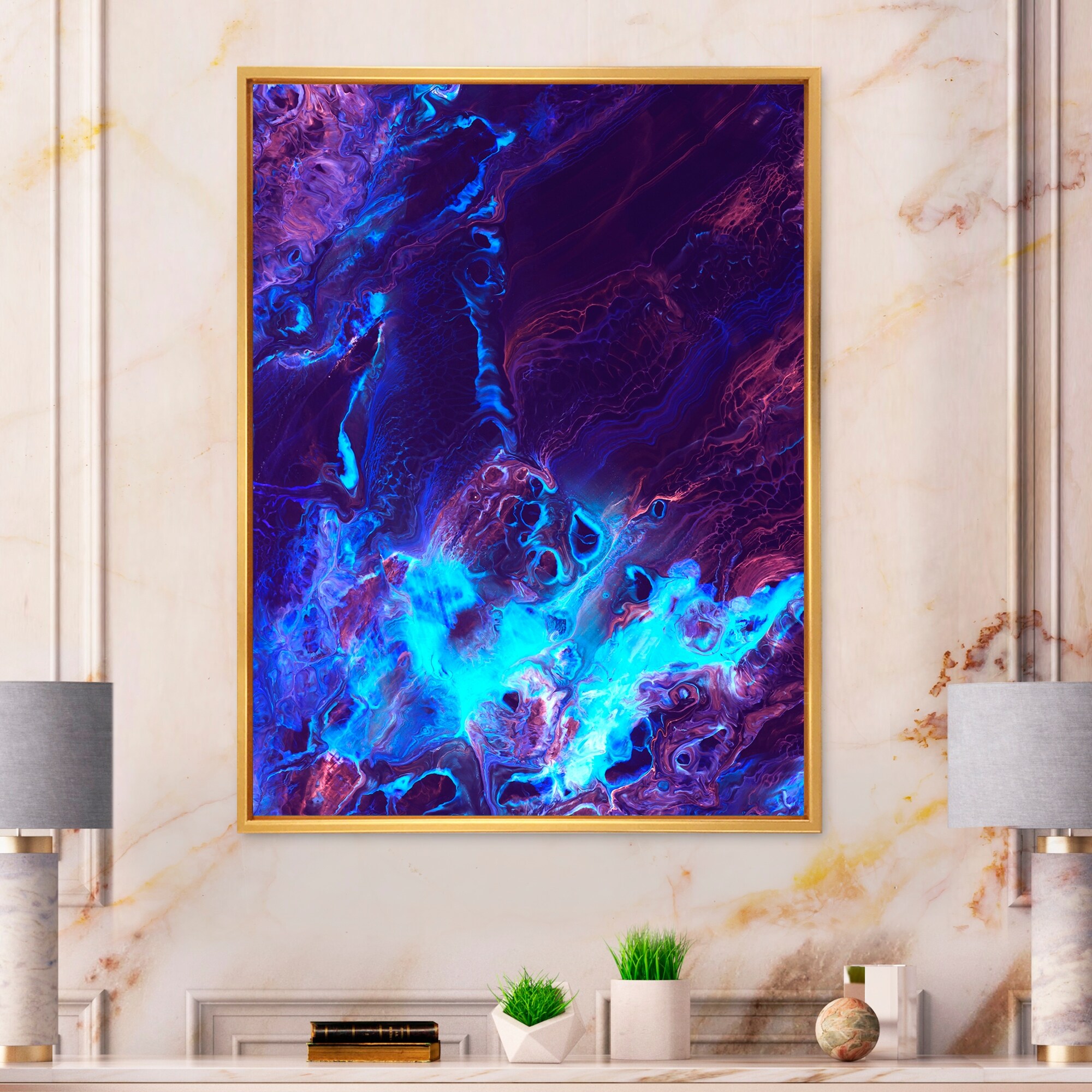 Designart "Neon Liquid Art in Purple And Blue" Modern Framed Canvas Wall Art Print