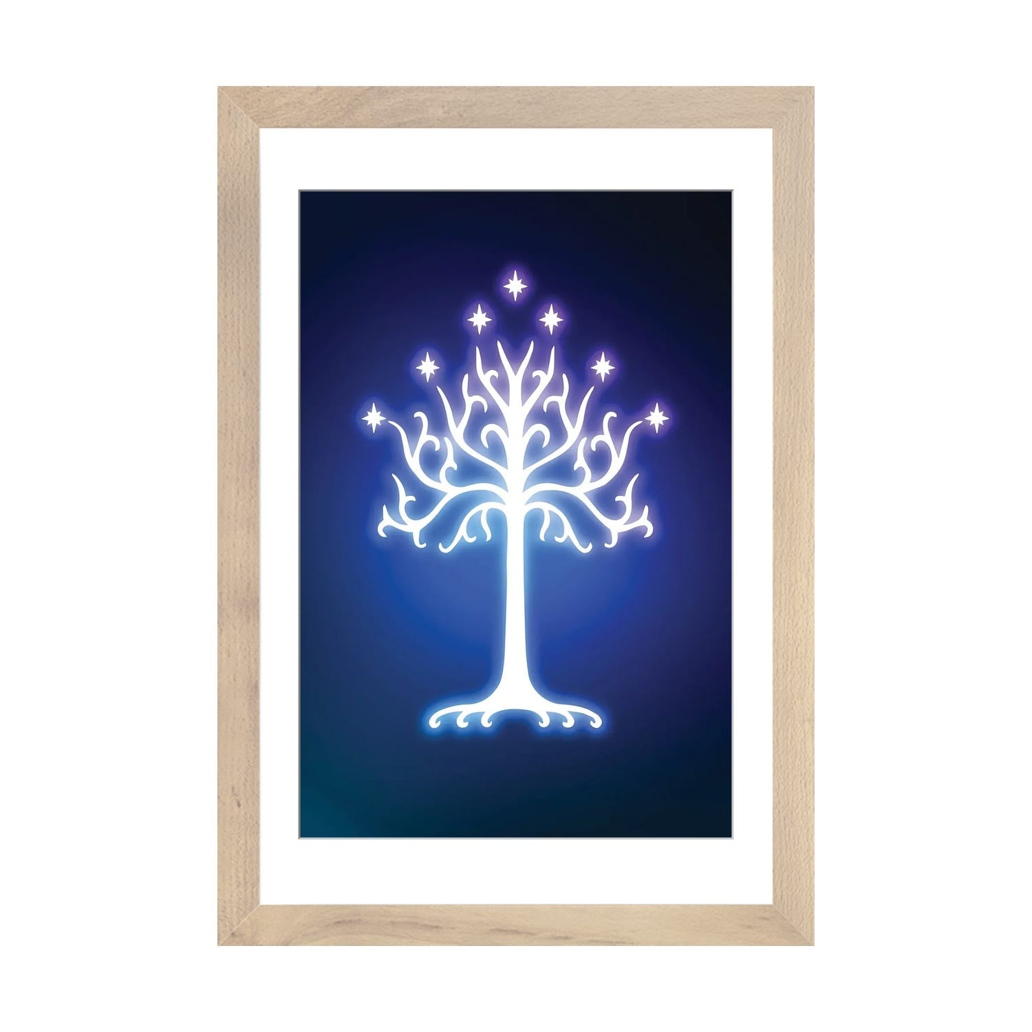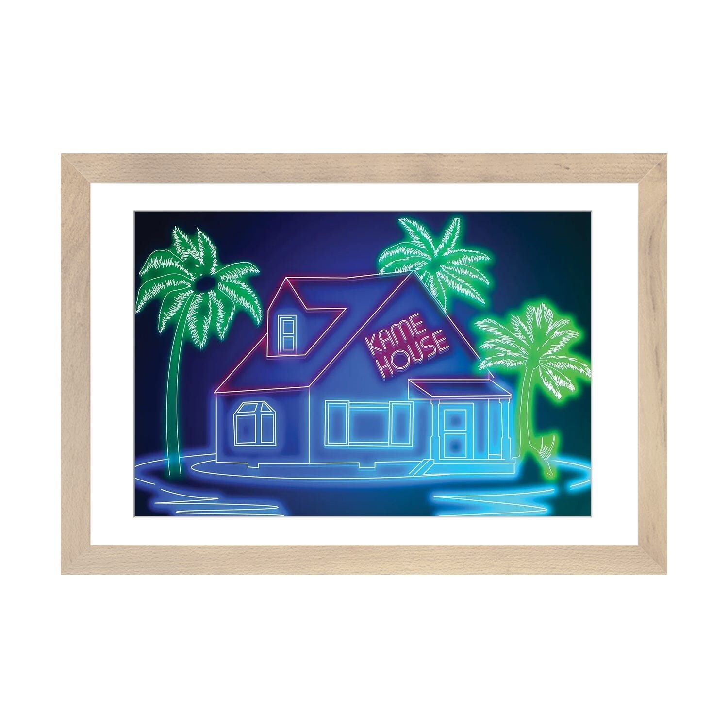 Designart "Neon Tree on Coastline At Dark" Japon Landscape Framed Art Print