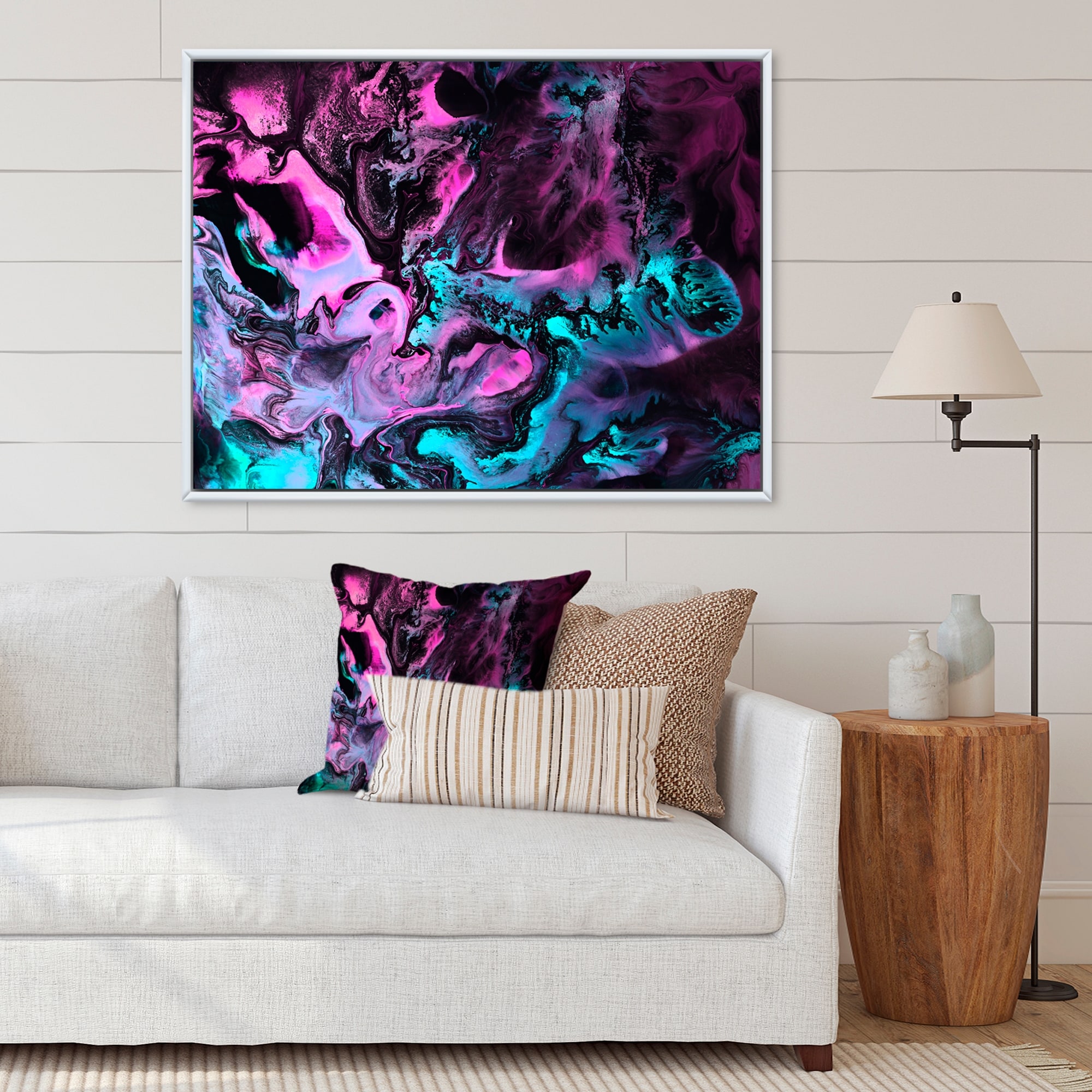 Designart "Neon Pink Blue And Green Liquid Art Landscape" Modern Framed Canvas Wall Art Print