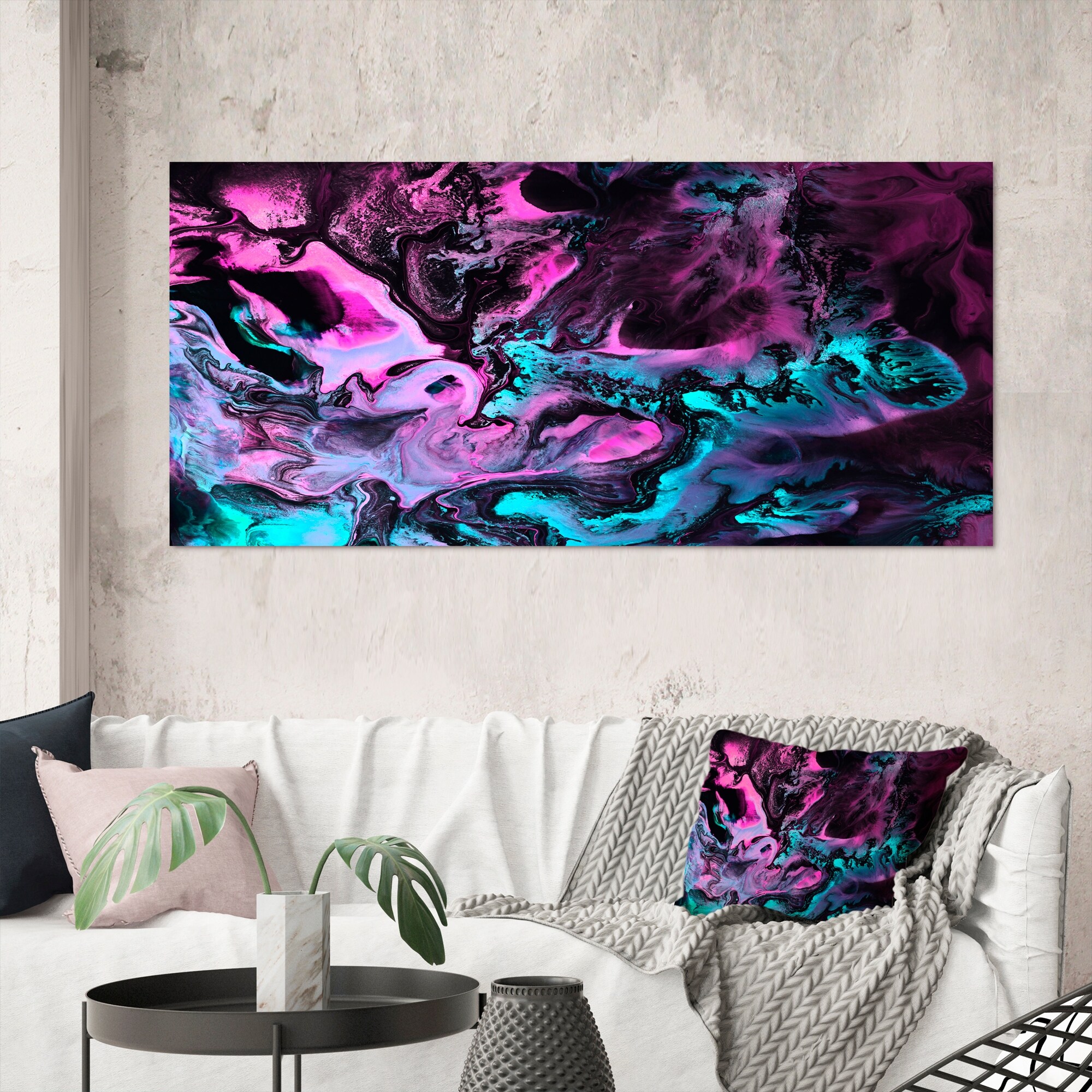 Designart "Neon Green And Pink Liquid Art" Modern Canvas Wall Art Print