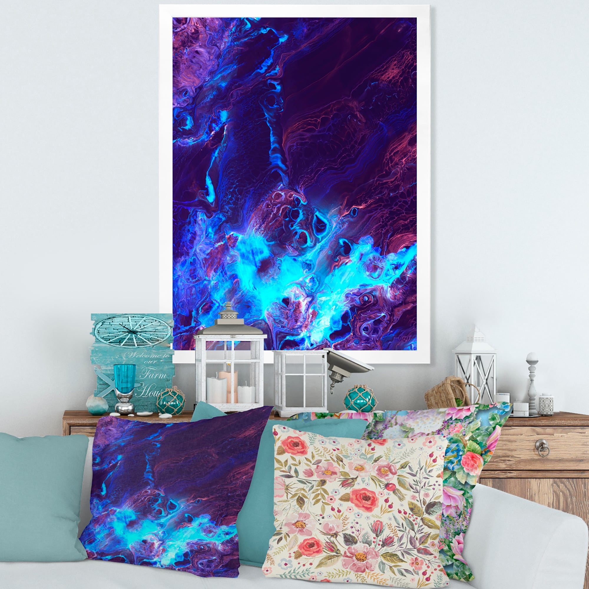 Designart "Neon Liquid Art in Purple And Blue" Modern Framed Art Print