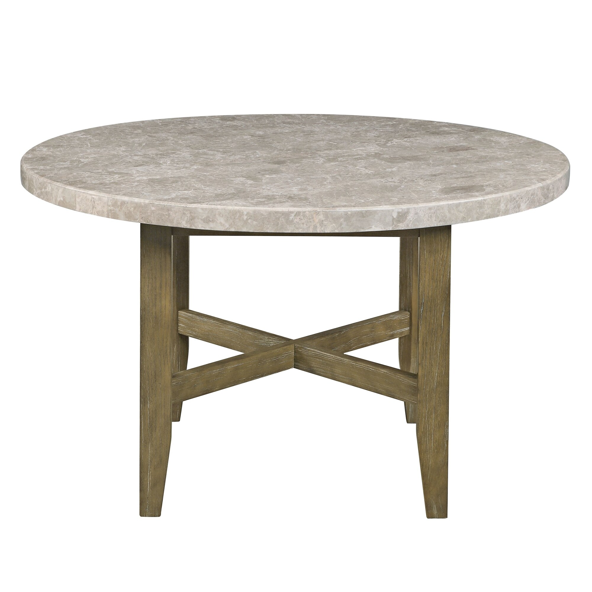 Round Dining Table with Marble Top and Oak Finish