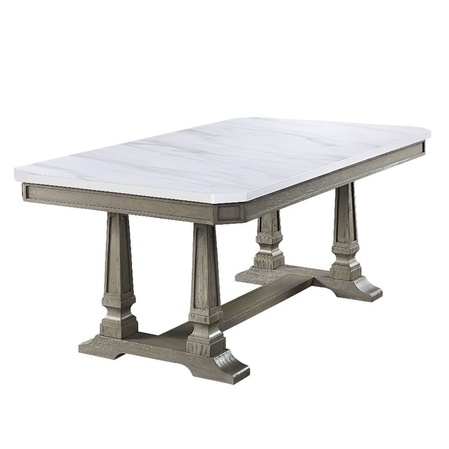 72-90 Inch Rectangular Dining Table, Extension Leaf, Trestle Base, Oak Gray