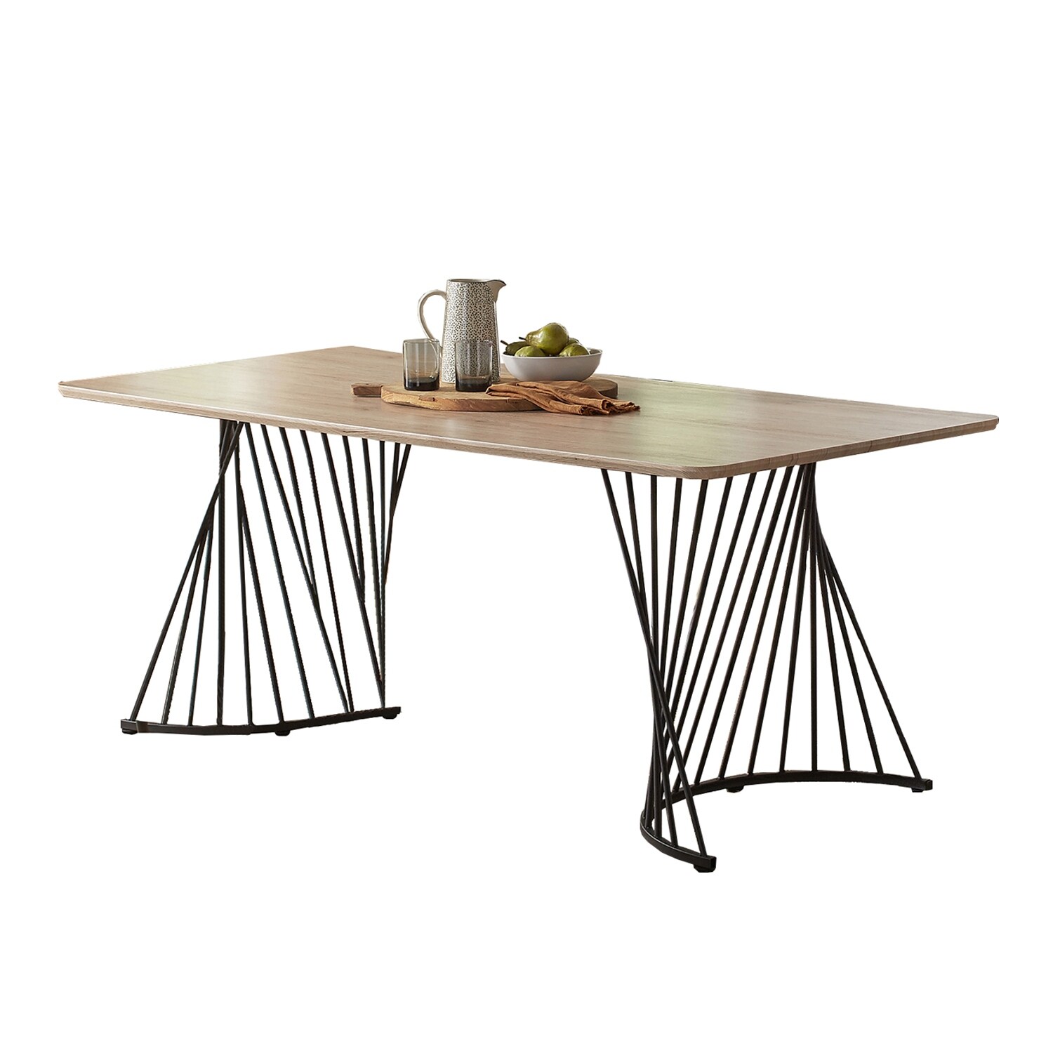 Swirl Base Dining Table in Natural Oak and Gunmetal - Natural Oak and Gunmetal