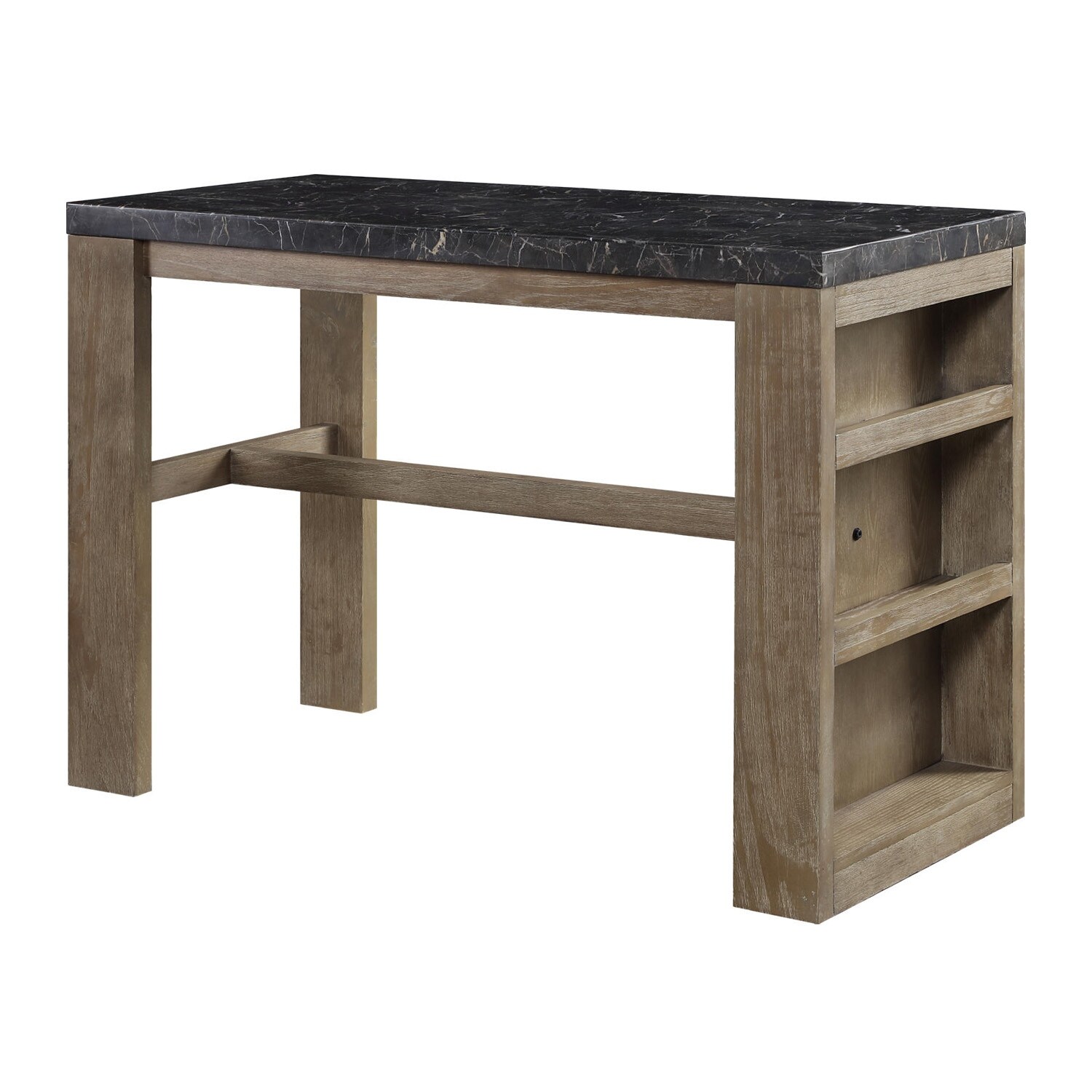 Rectangular Counter Height Table with Open Shelf in Weathered Oak