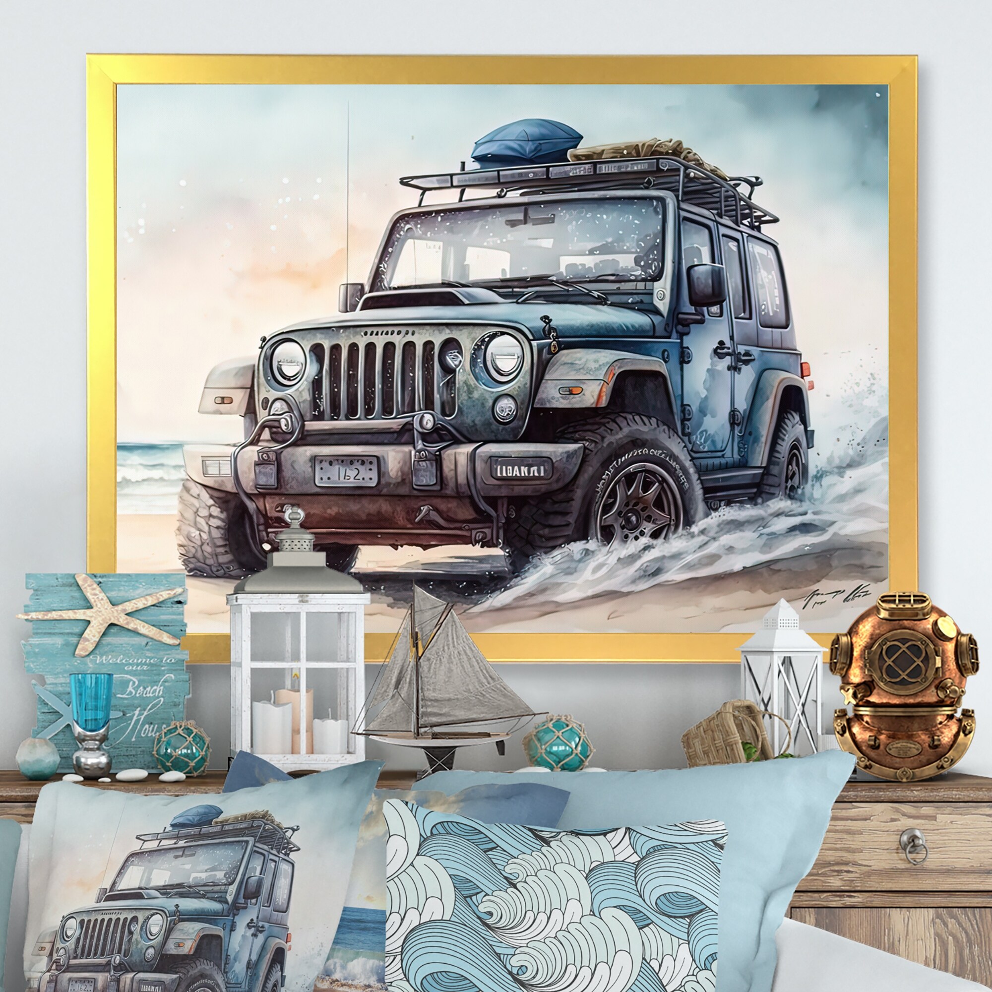 Designart "Off Road on the Beach II" Beach Framed Art Print