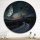 Designart 'Rural Road Through the Meadow Under Full Moon' Nautical & Coastal Metal Circle Wall Art