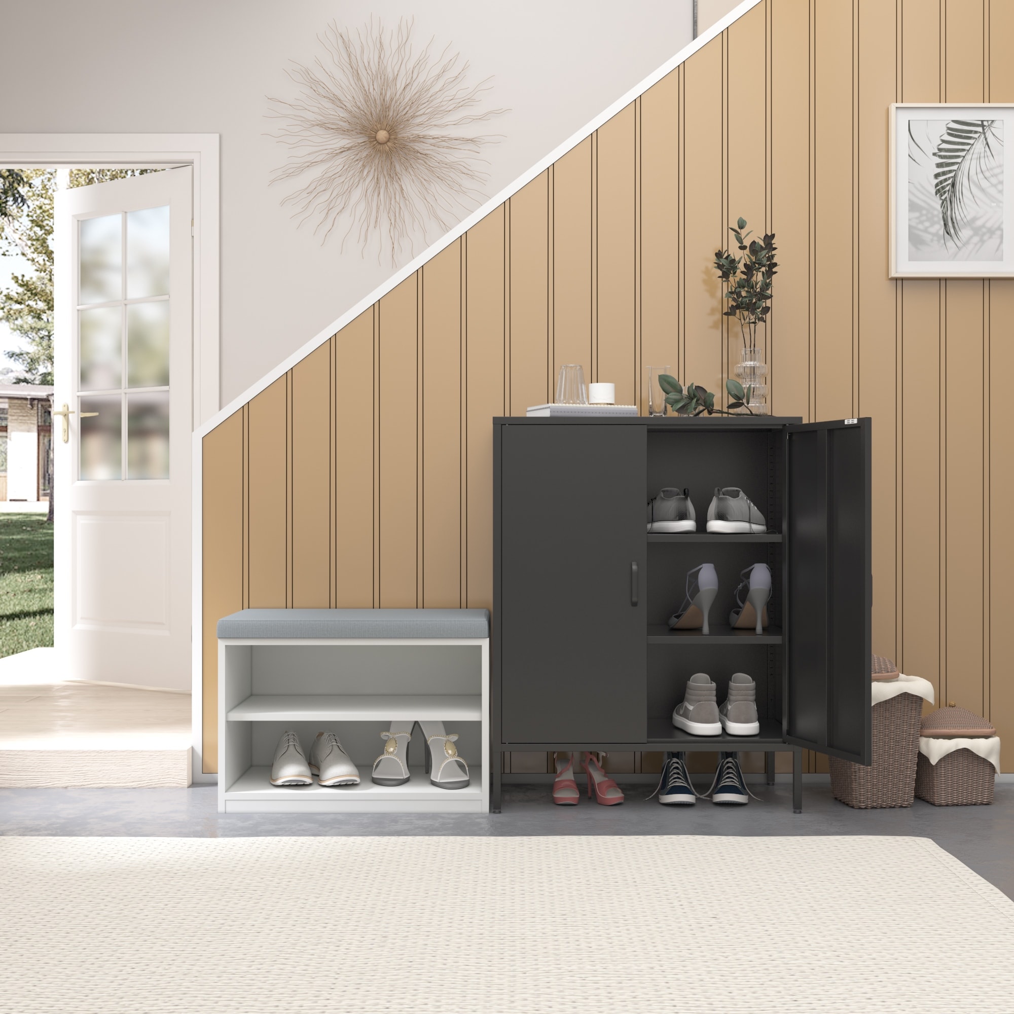 2-Door Adjustable Metal Storage Locker Accent Cabinet for Office Home