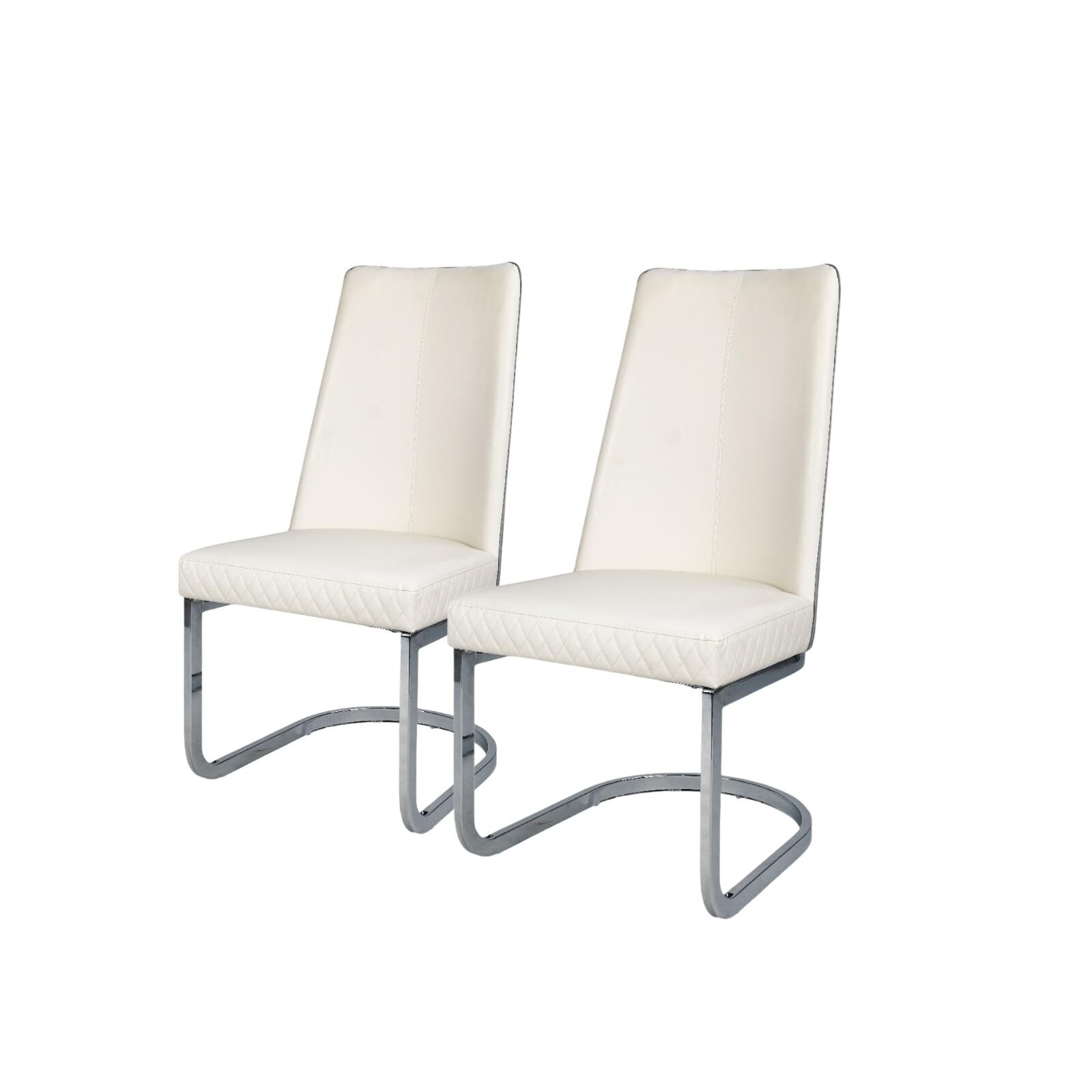 Set of Two (2) Modern White High Back Office Chair Ribbed PU Leather Swivel Tilt Computer Desk Cushion Seat Boss