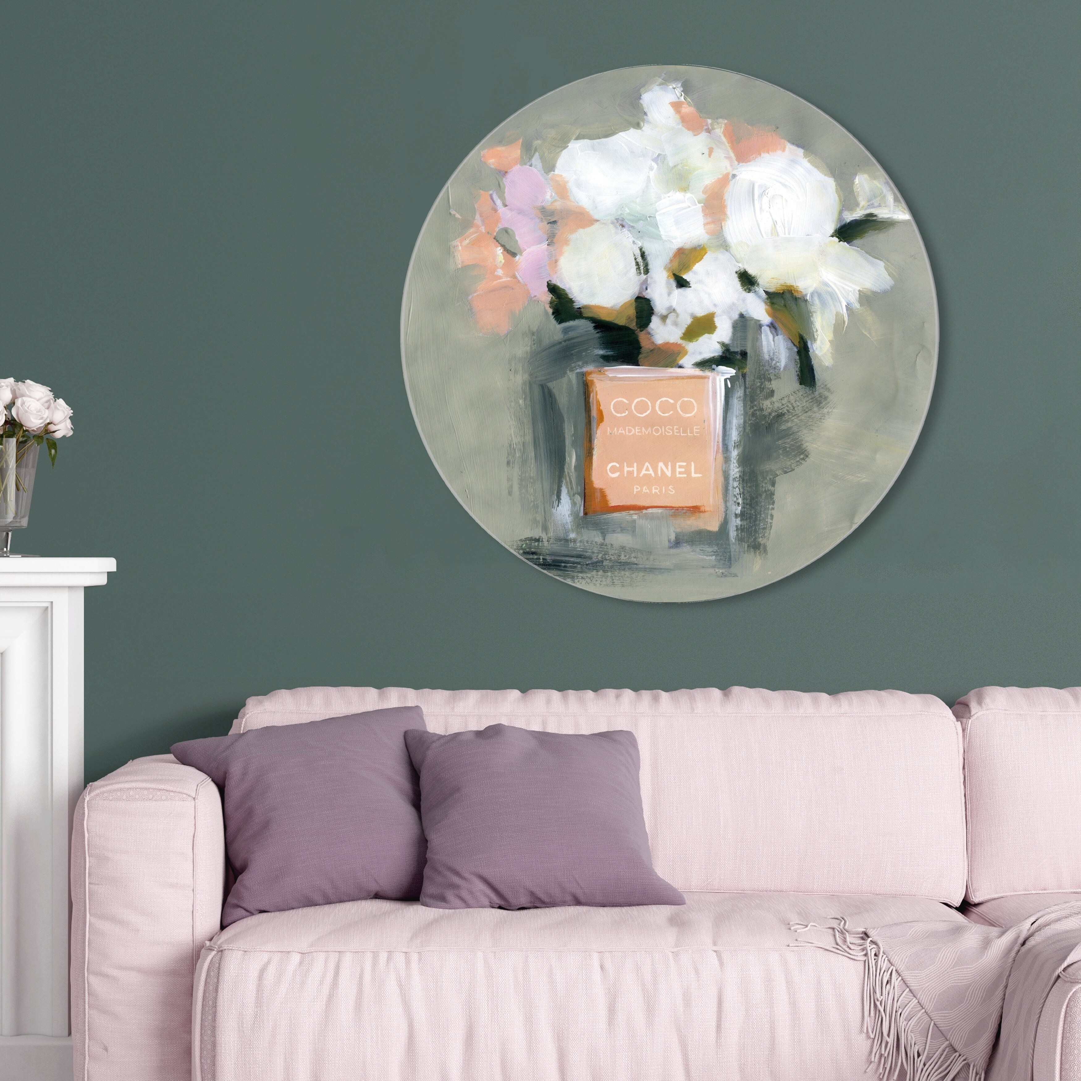 Oliver Gal 'L'Eau de Rose Round' Fashion and Glam Round Circle Acrylic Wall Art - Orange, White
