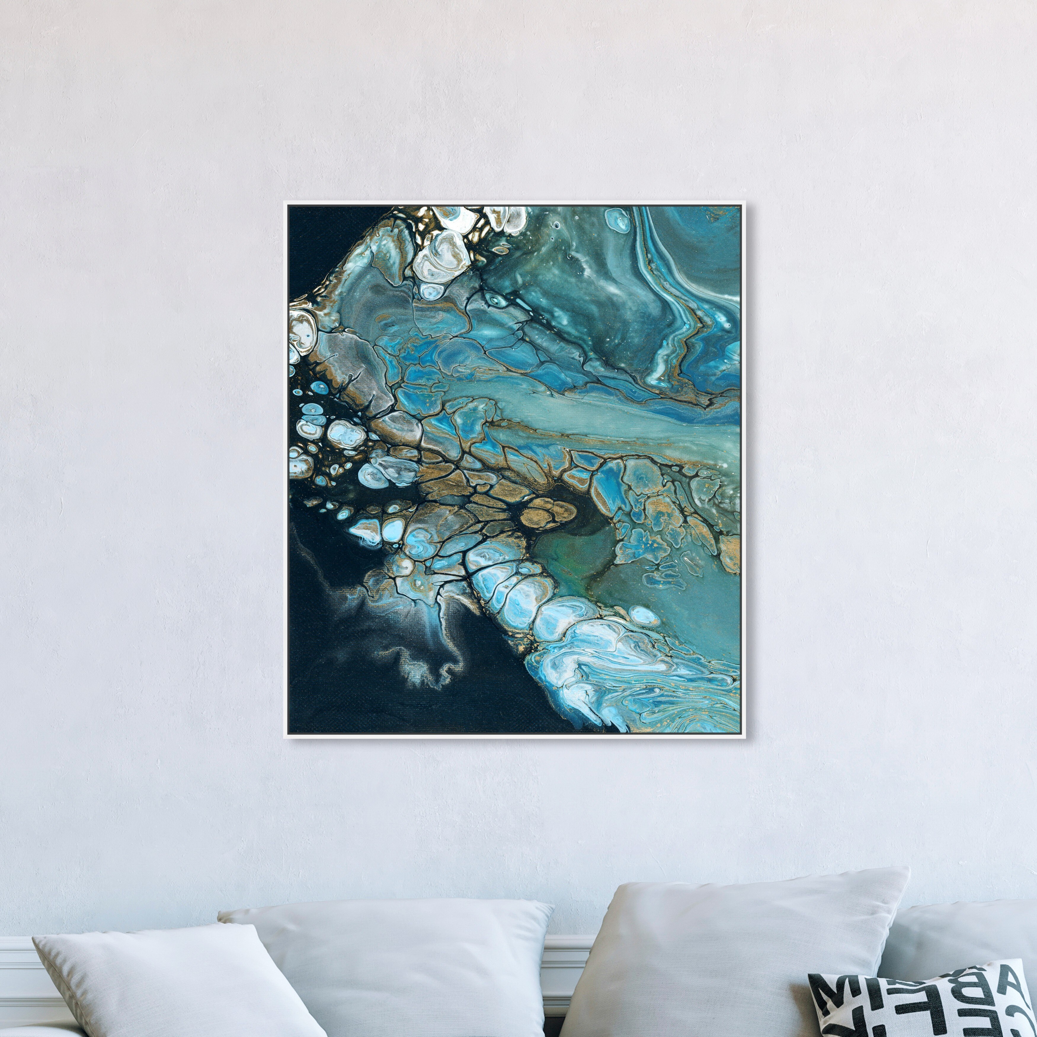 Oliver Gal 'Inlet' Abstract Wall Art Framed Canvas Print Crystals - Blue, Black