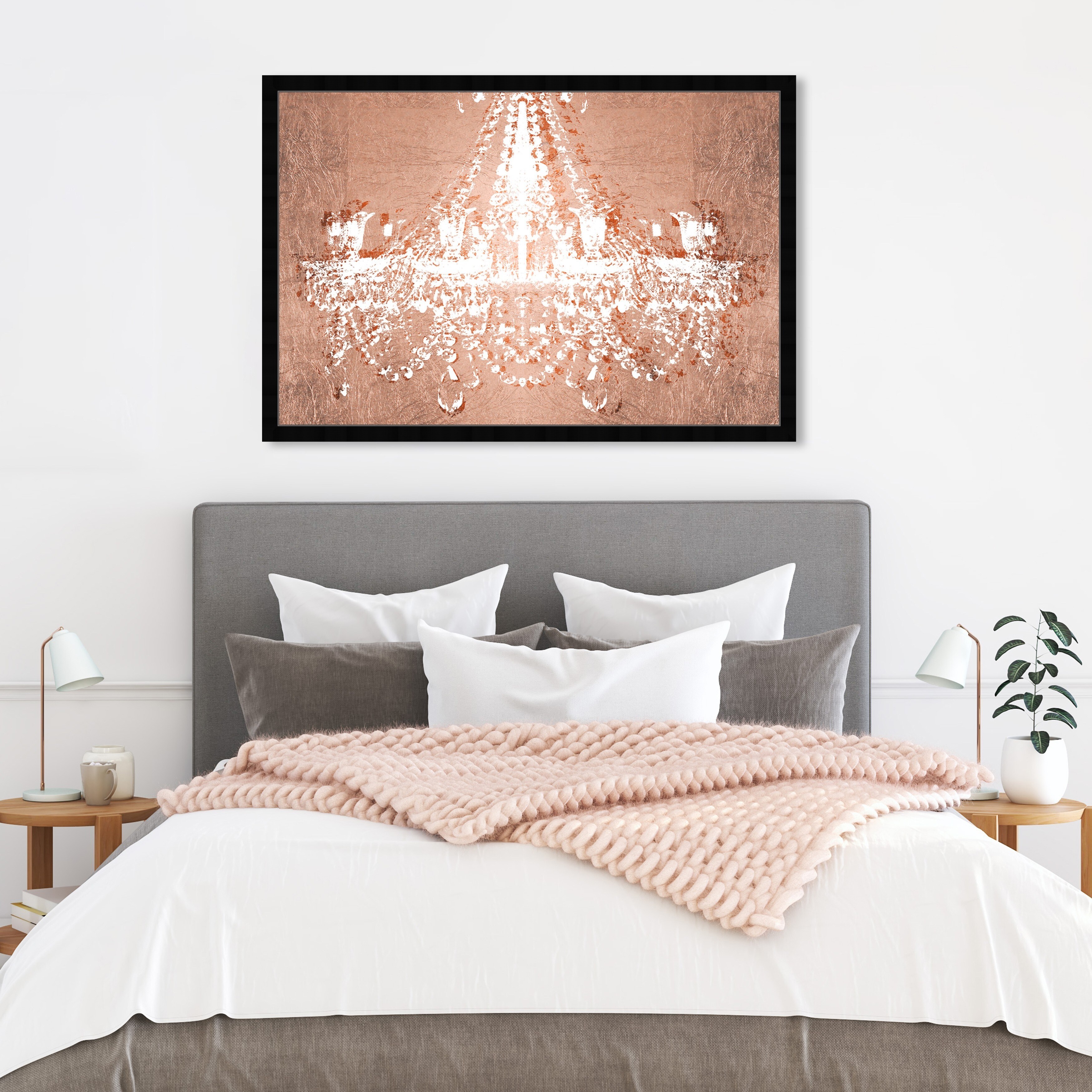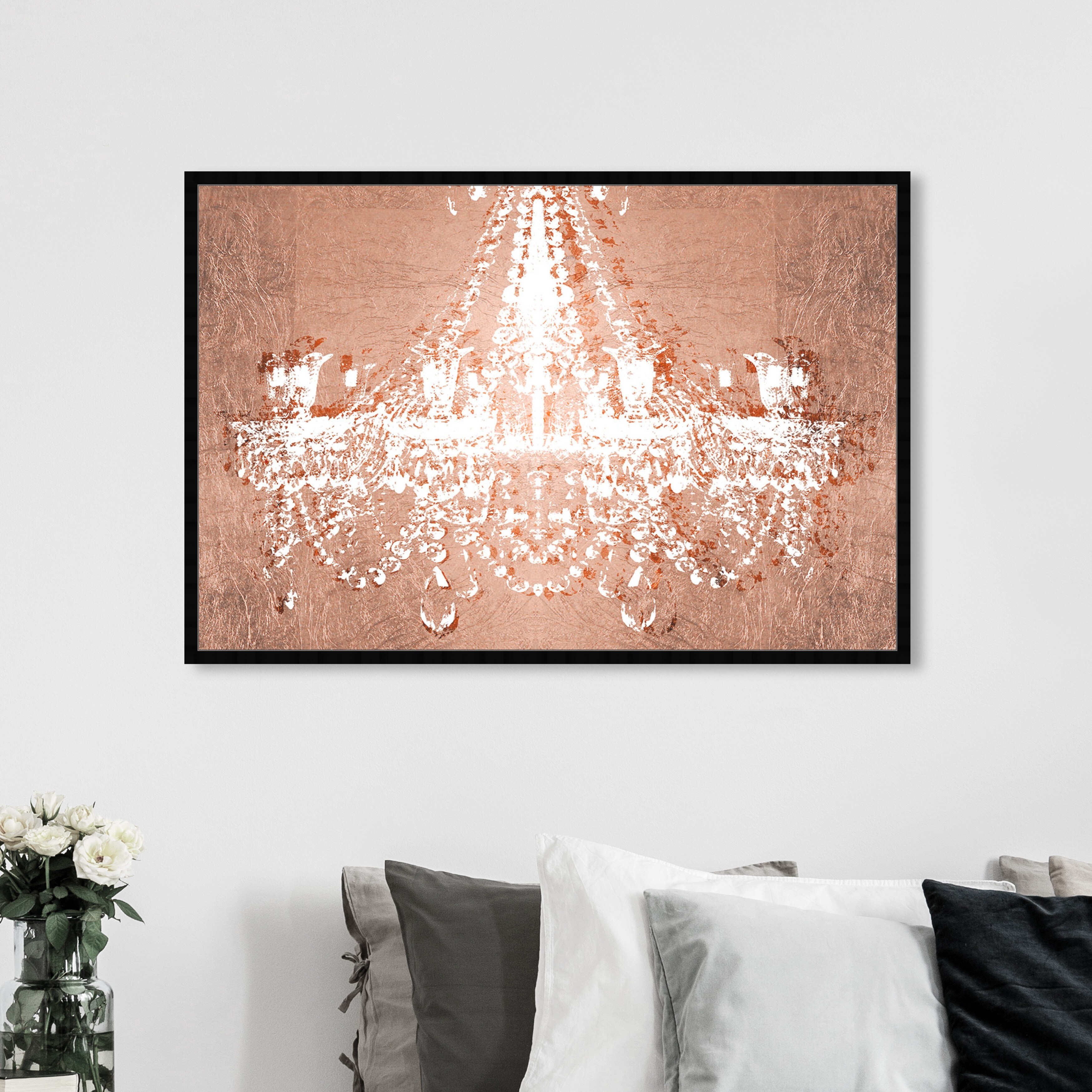 Oliver Gal 'Dramatic Entrance Rose' Fashion and Glam Wall Art Framed Print Chandeliers - Pink, White