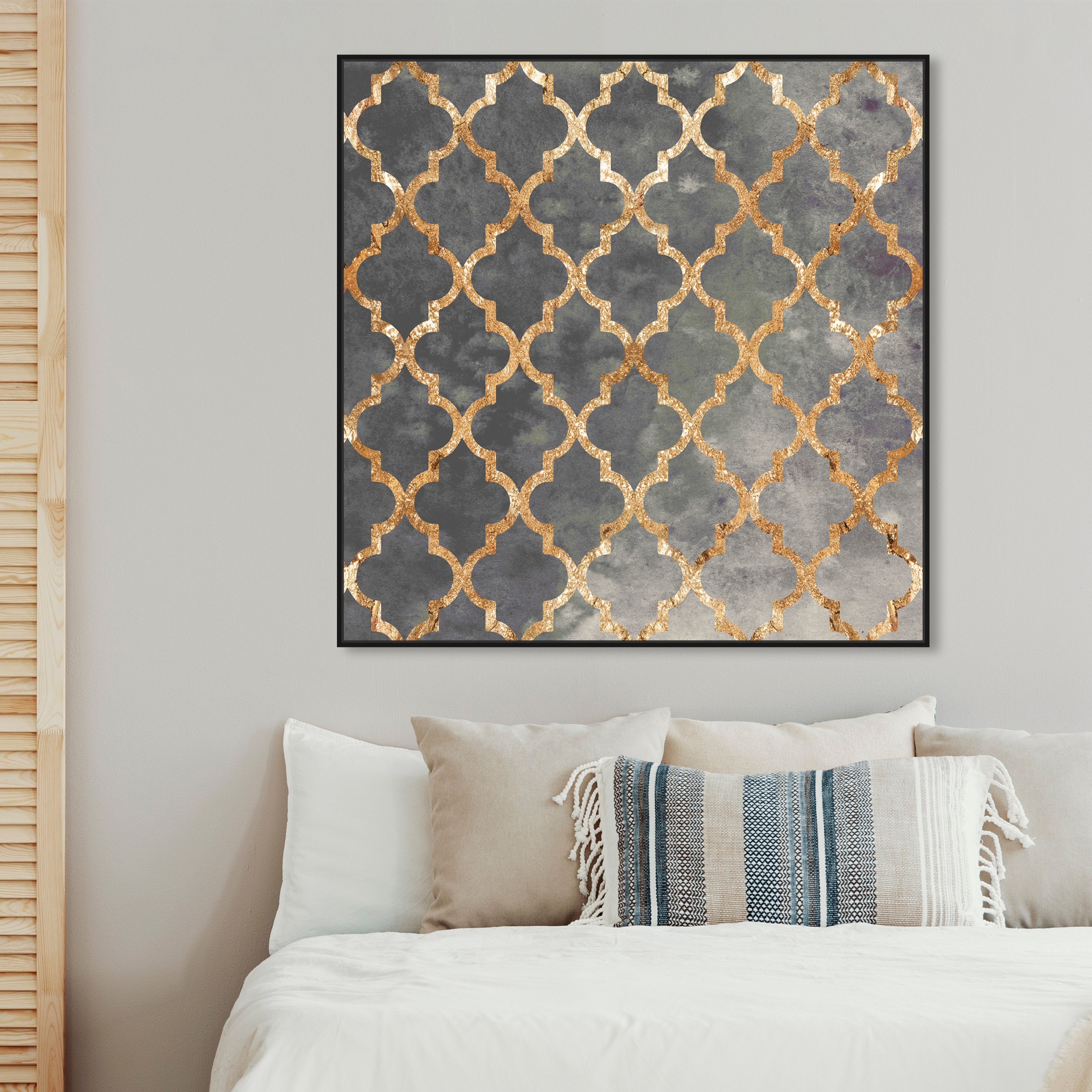 Oliver Gal 'Arabesque Gold' Abstract Wall Art Framed Canvas Print Patterns - Gray, Gold