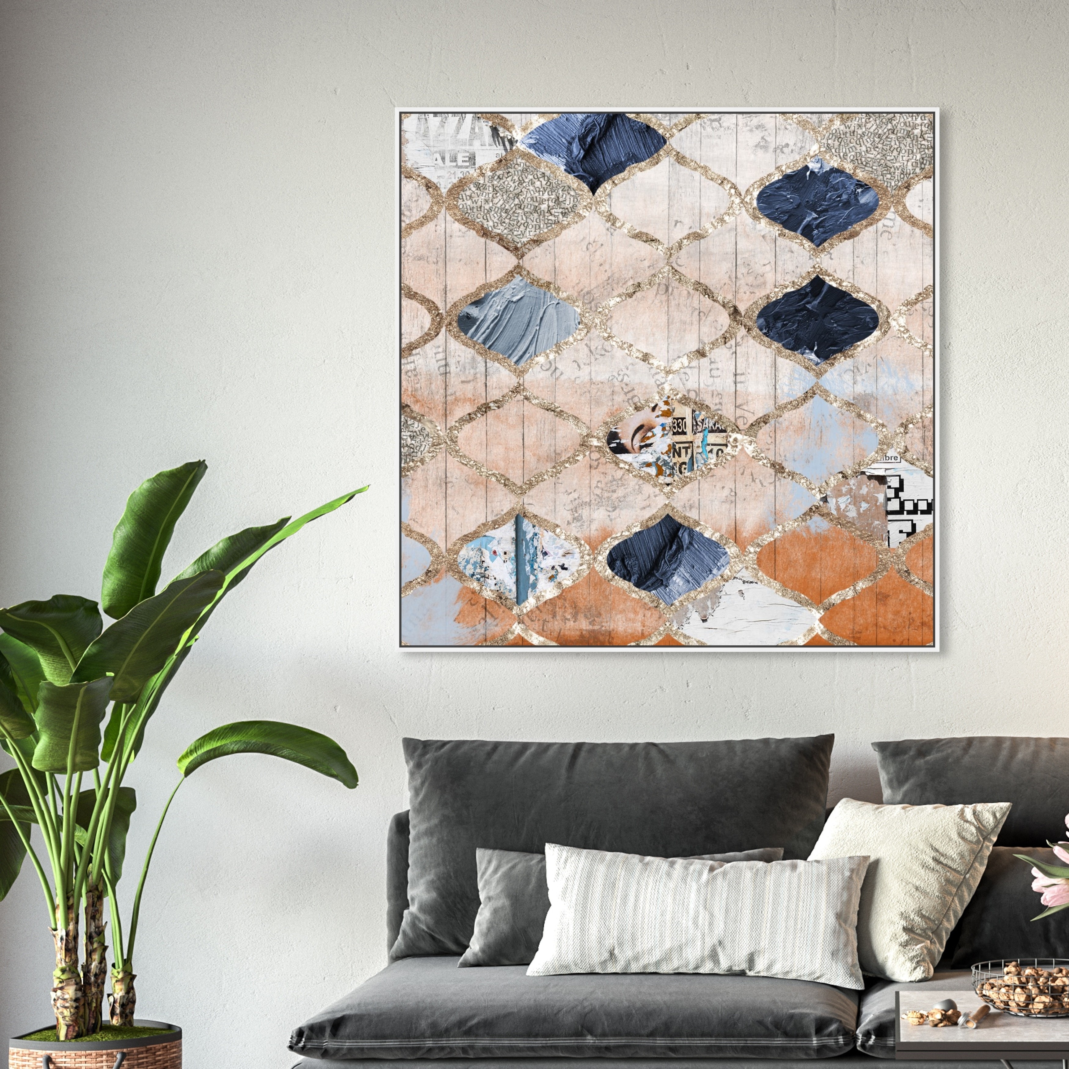 Oliver Gal Abstract Wall Art Framed Canvas Prints 'Modern Moroccan' Patterns - Orange, Blue