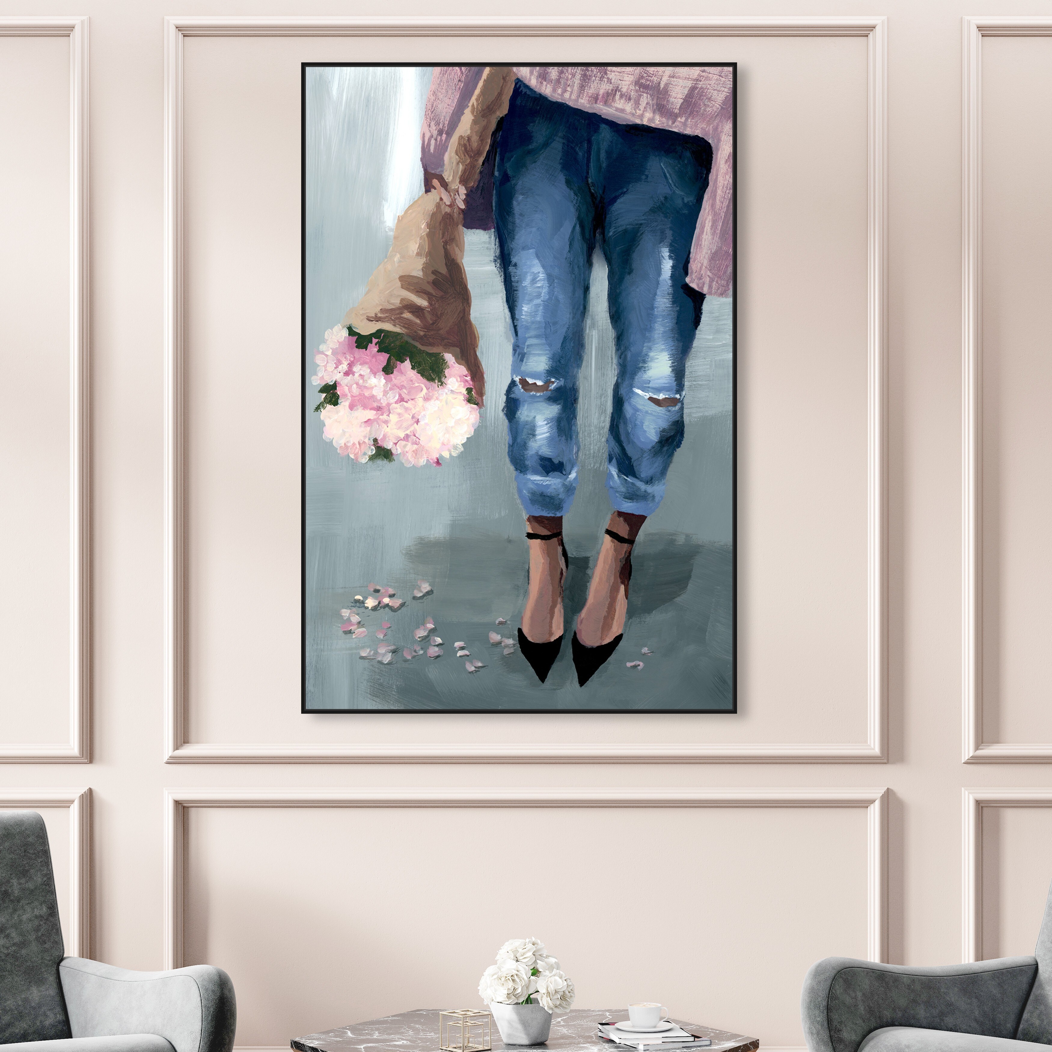 Oliver Gal 'Falling Flowers' Floral and Botanical Wall Art Framed Canvas Print Florals - Pink, Blue