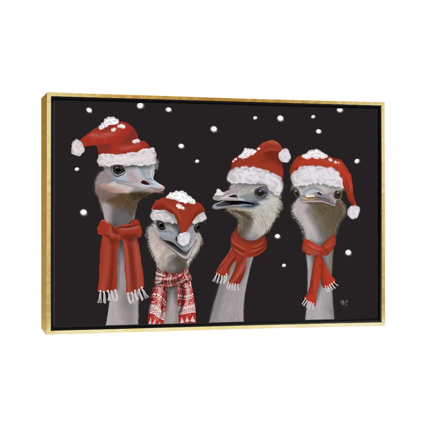 iCanvas "Ostrich, Christmas Gals" by Fab Funky Framed