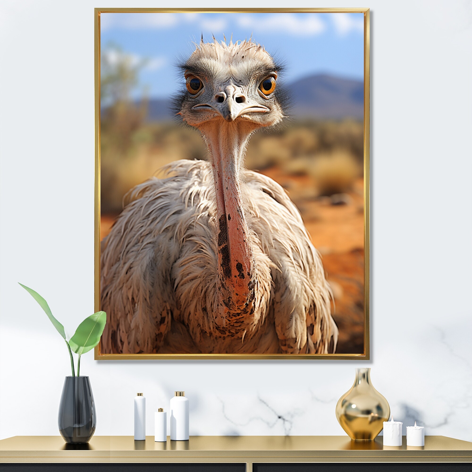 Designart "African Ostrich Portrait" Other Animals Framed Canvas Art Print