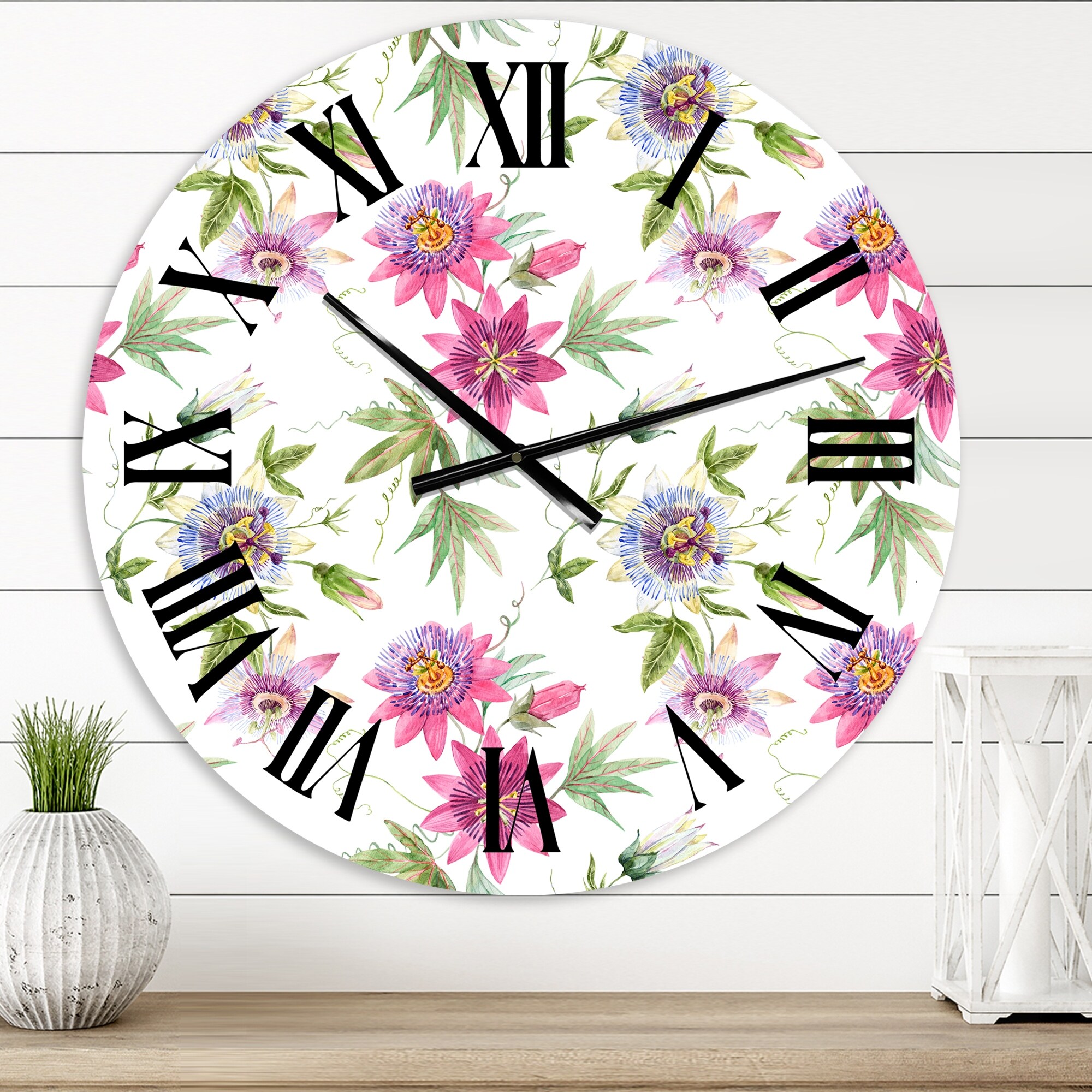 Designart 'Pink Passionflower Flowers' Traditional wall clock