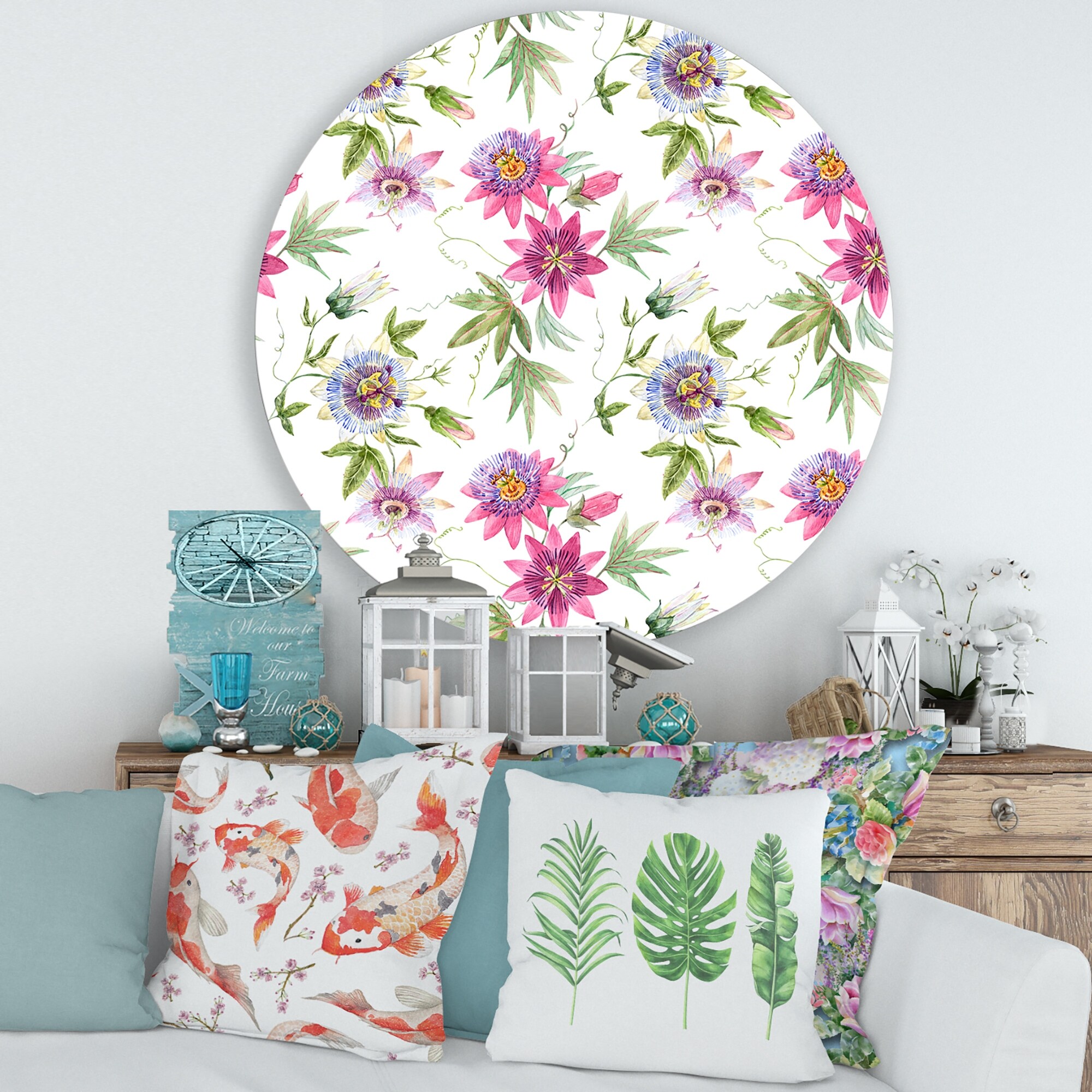 Designart 'Pink Passionflower Flowers' Traditional Metal Circle Wall Art