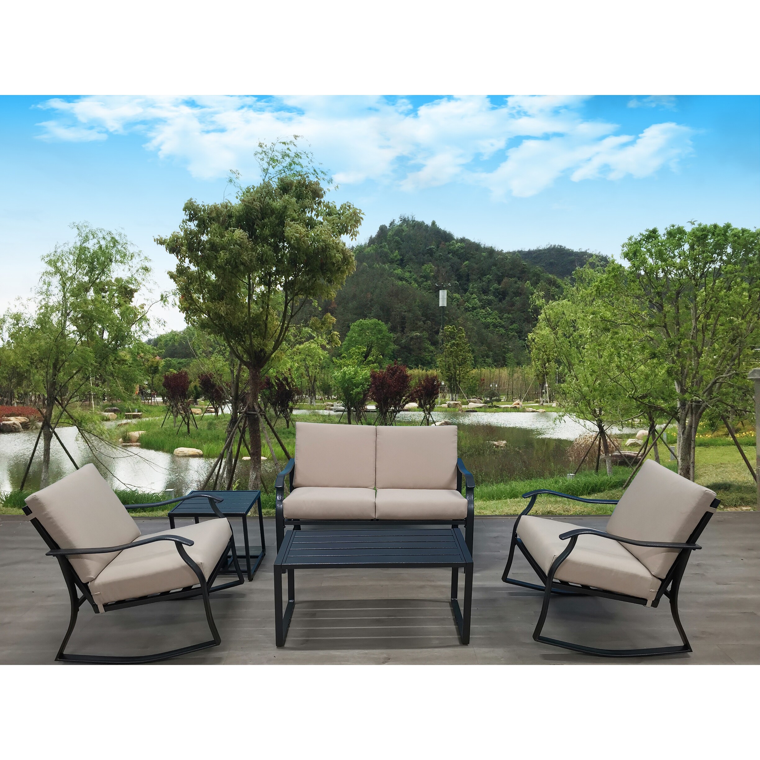 Outdoor Patio 5-Piece Furniture Set Metal Loveseat Rocker Chairs Set with Table & Cushions